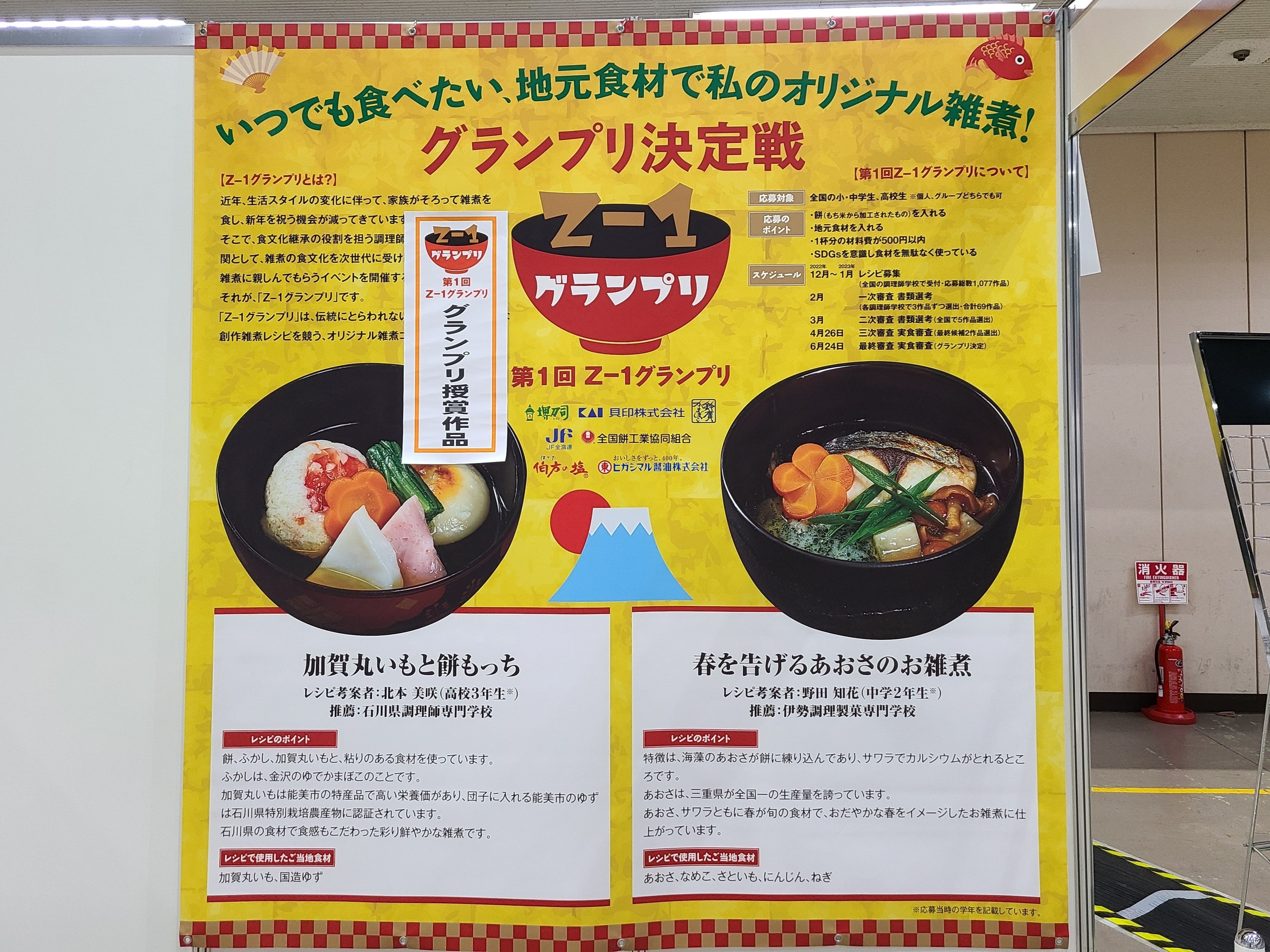 全国の小・中学生、高校生から寄せられたオリジナルレシピ1,107作品のうち、一次~三次審査を通過した2種類のお雑煮を来場者に販売(2種類1セットで100円、500セット限定) 。