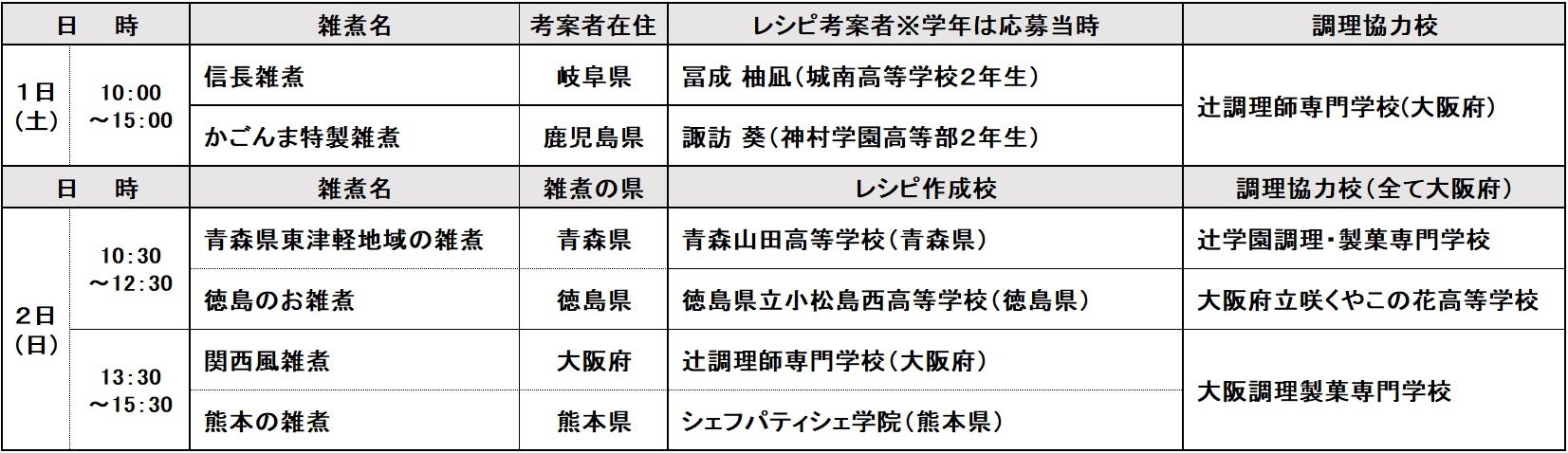 ・調理師学校による各都道府県の伝統的雑煮レシピ作成、イベントでの調理提供