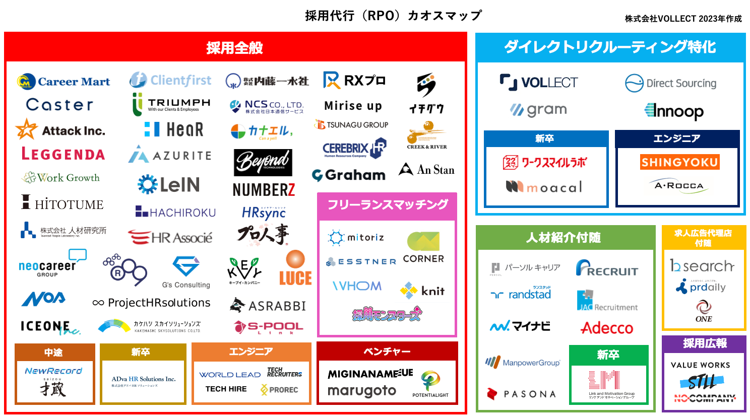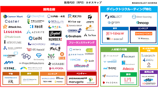 ※「採用代行(RPO)カオスマップ」を引用される際は、出典「株式会社VOLLECT」とクレジット表記していただきますようお願いいたします。