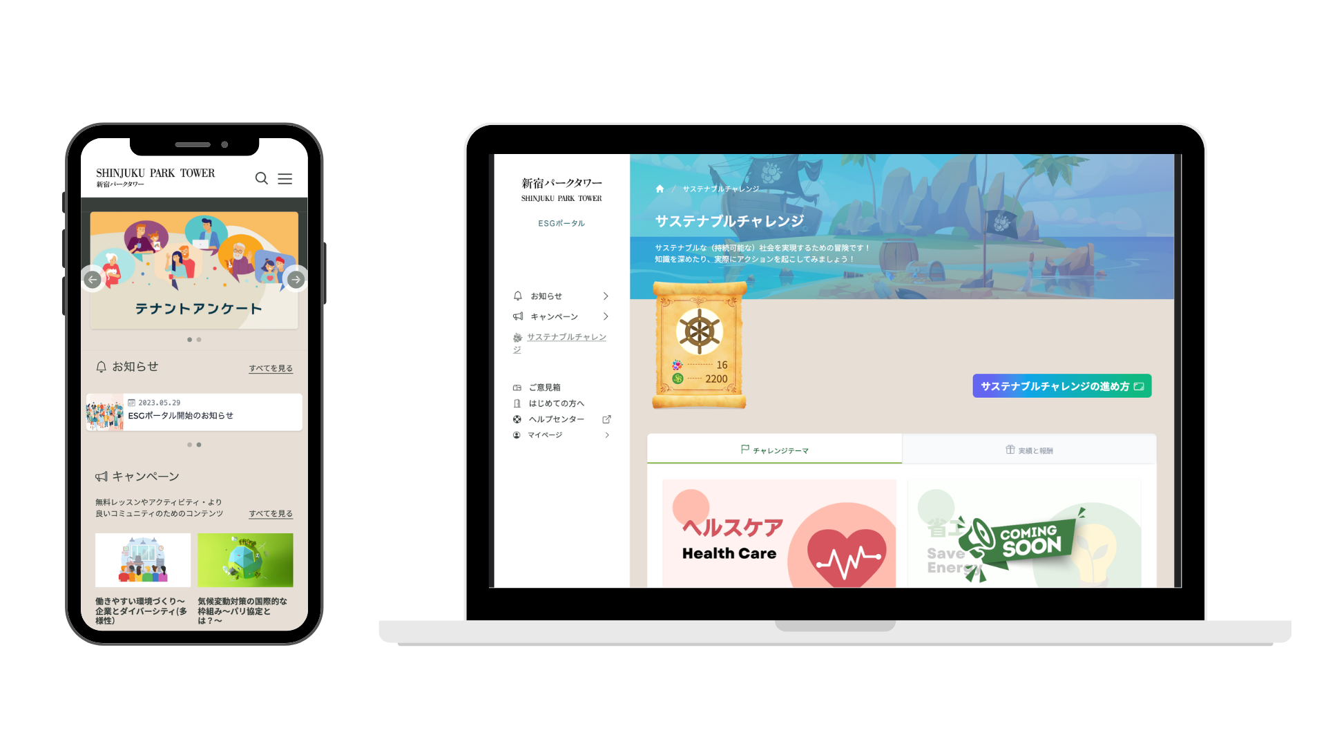 ポータルサイトを通じて、テナントワーカーのエンゲージメントを高めるESGに係るプログラム提供や意見集約を行う等、東京ガス不動産とテナントワーカーが直接交流・協働することで、「不動産の社会的インパクト」を高めます。