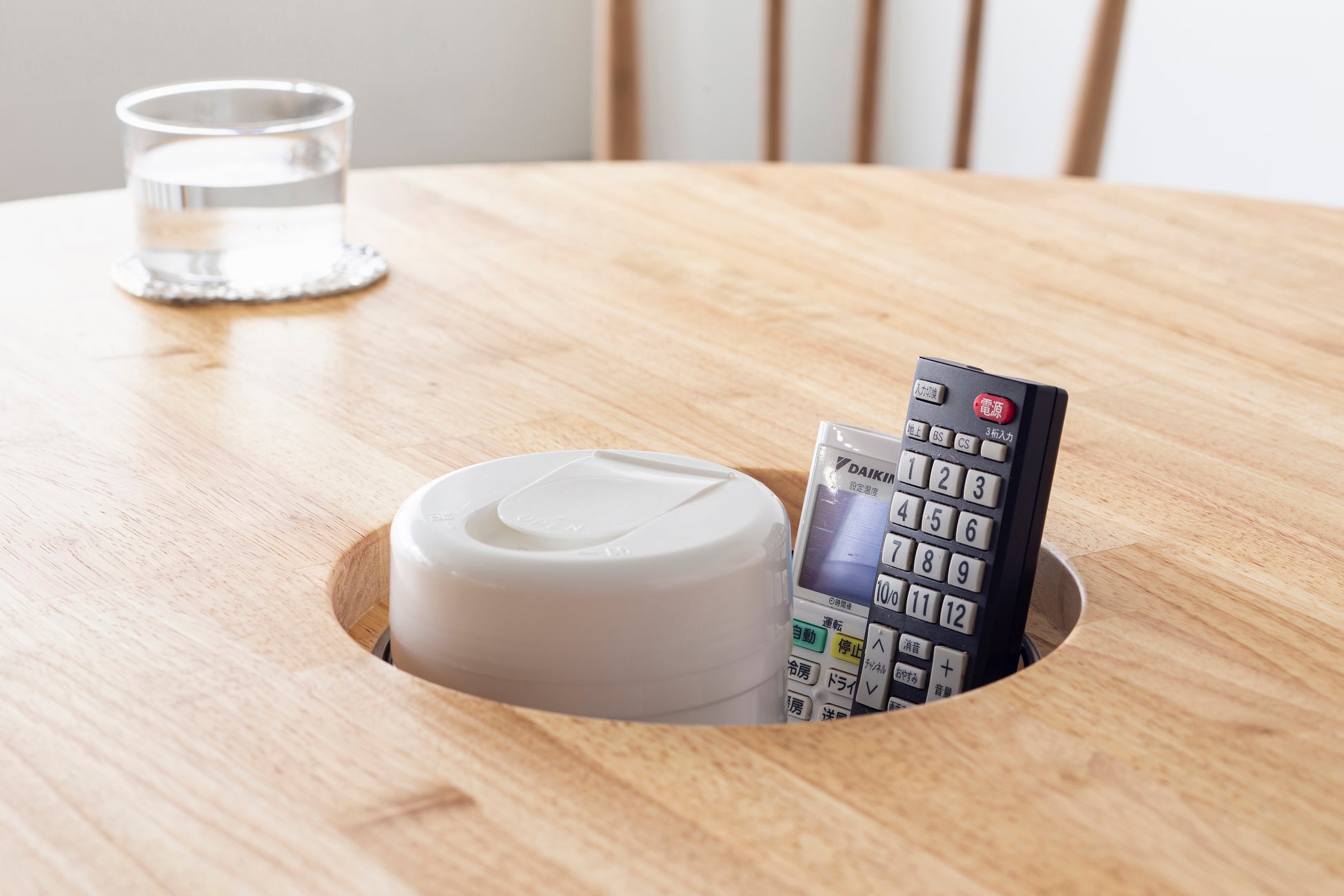 ①小物入れとして。テーブル上で散らばりやすいリモコンやティッシュ類を収納できます。