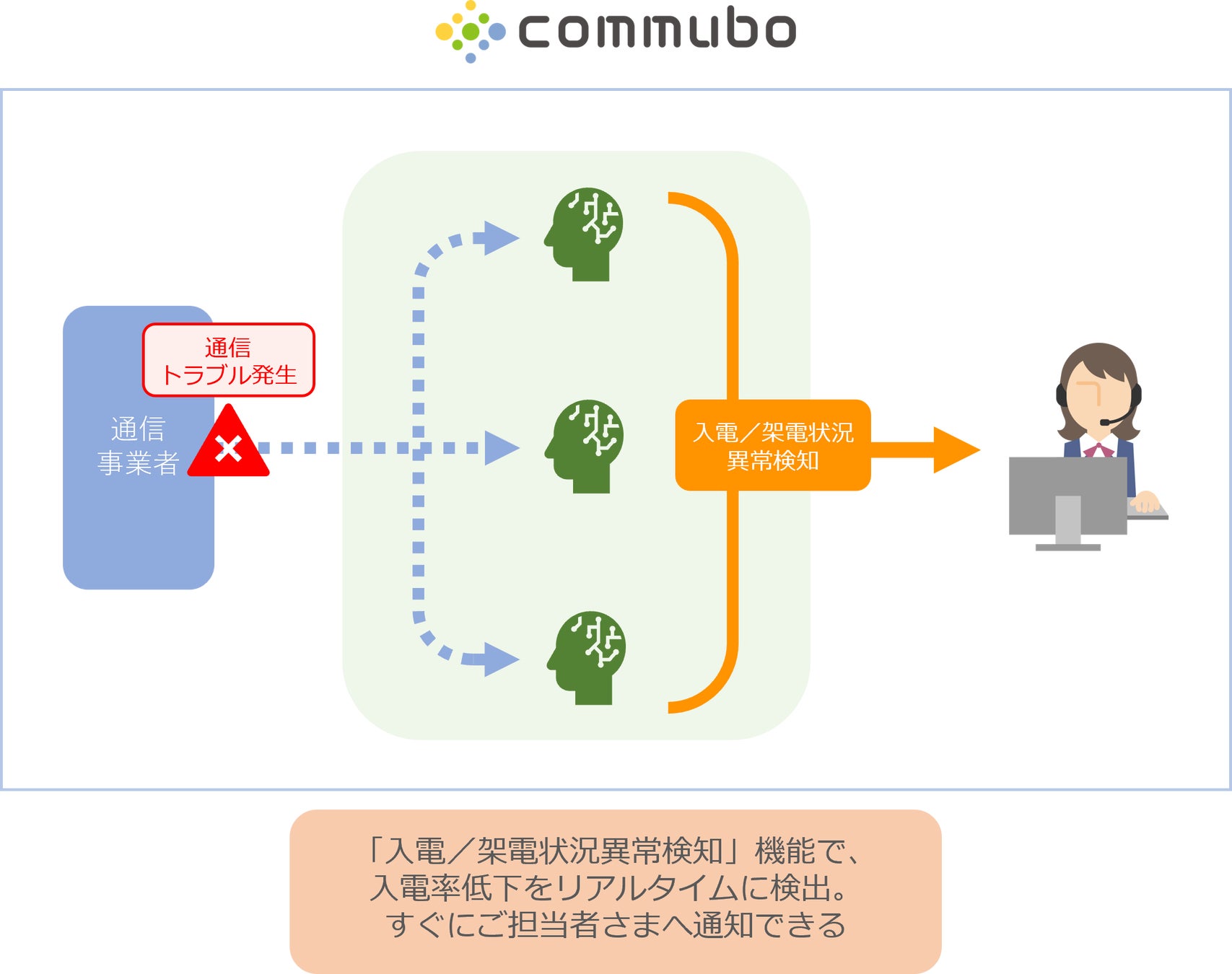 これまでの 「commubo」 が実現してきた、高度なシステム常時監視による優れた可用性に加え、ボイスボット・コールセンターの潜在的な問題を速やかに検出することで、自動化されたコールセンター業務をより安定的に運用できるようになります。