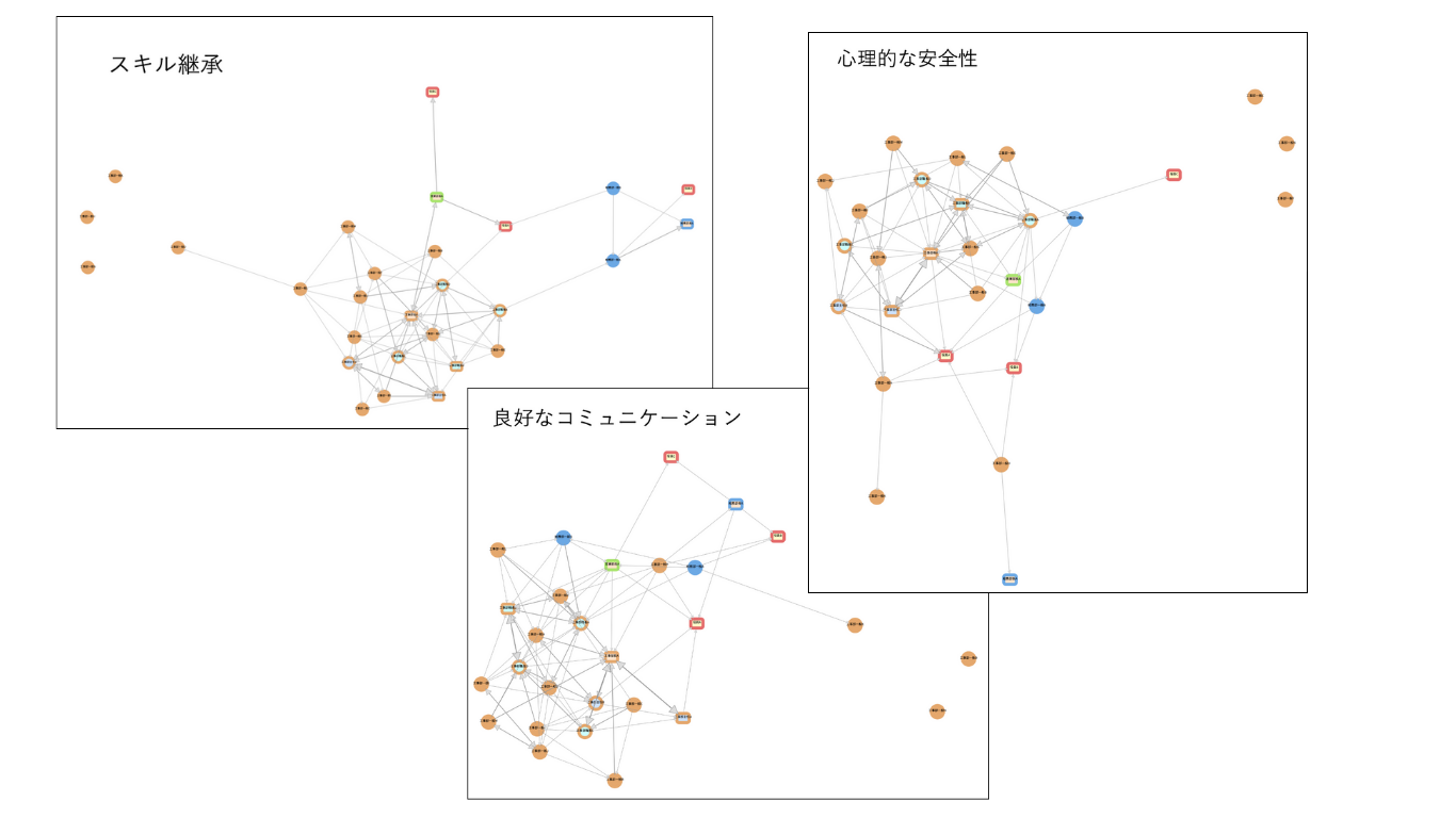 また、業務上直接やり取りをする機会がなくとも、毎日挨拶を交わしたり雑談をしたりと、普段の何気ないコミュニケーションが活発な組織は、部門間の協力が不可欠な事態や会社全体の危機に瀕したときにもスムーズに対処できます。加えて、組織の維持・発展に必要なスキルの世代継承がうまくいっているかどうかも重要となります。「自分は誰の仕事ならカバーできるのか」「自分は誰になら仕事を任せることができるのか」という観点から明らかにすることができます。