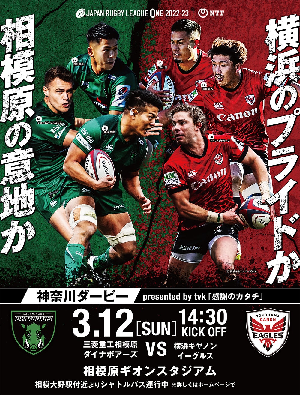 ラグビー・三菱重工相模原ダイナボアーズ 神奈川ダービー presented by tvk「感謝のカタチ」開催決定のお知らせ