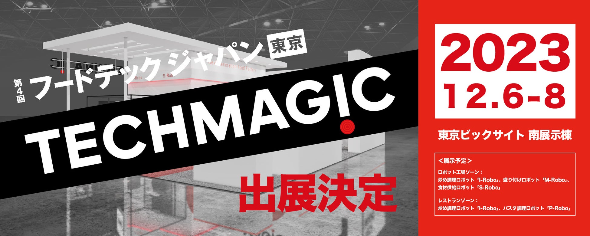 本展は、食品工場(製造)や飲食店における人手不足問題・労働環境の改善といった課題を先端テクノロジー(ロボット・IoT・AIなど)で解決するための展示会です。 TechMagicは本展示会において、「未来の工場・外食店舗」をテーマに、ブース内を「工場ゾーン」と「レストランゾーン」に分け、自社のロボットを導入した場合において、それらがどのような価値を提供できるのか、一目で来場者にご体感いただける空間を演出いたします。また、世界最大級のテクノロジー展示会であるCES(Consumer Electronic Show)において「優れたデザインと技術」が高く評価され、2024 Innovation Awardsを受賞した調理ロボット「I-Robo」が調理したチャーハンやパスタ調理ロボット「P-Robo」が調理したパスタのなどのお食事をご試食いただけます。