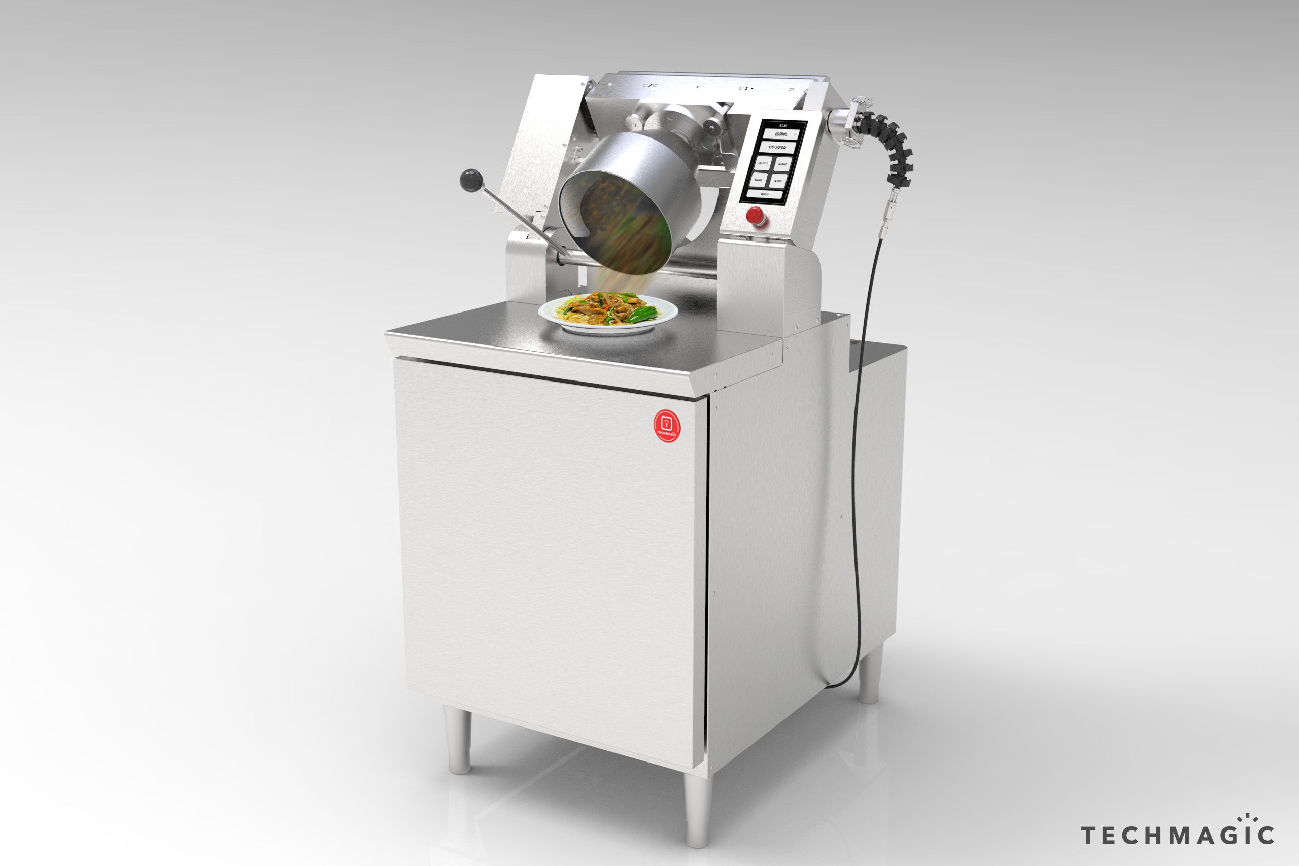 TechMagicが開発した調理ロボットI-Roboは、炒飯・野菜炒めなど、熟練の職人のレシピを自動で再現します。また、I-Roboは、液体調味料の自動供給機能をオプションで追加可能で、調味、攪拌、加熱、調理後のフライパンの洗浄といった一連の動作を自動化することができるロボットです。自動調