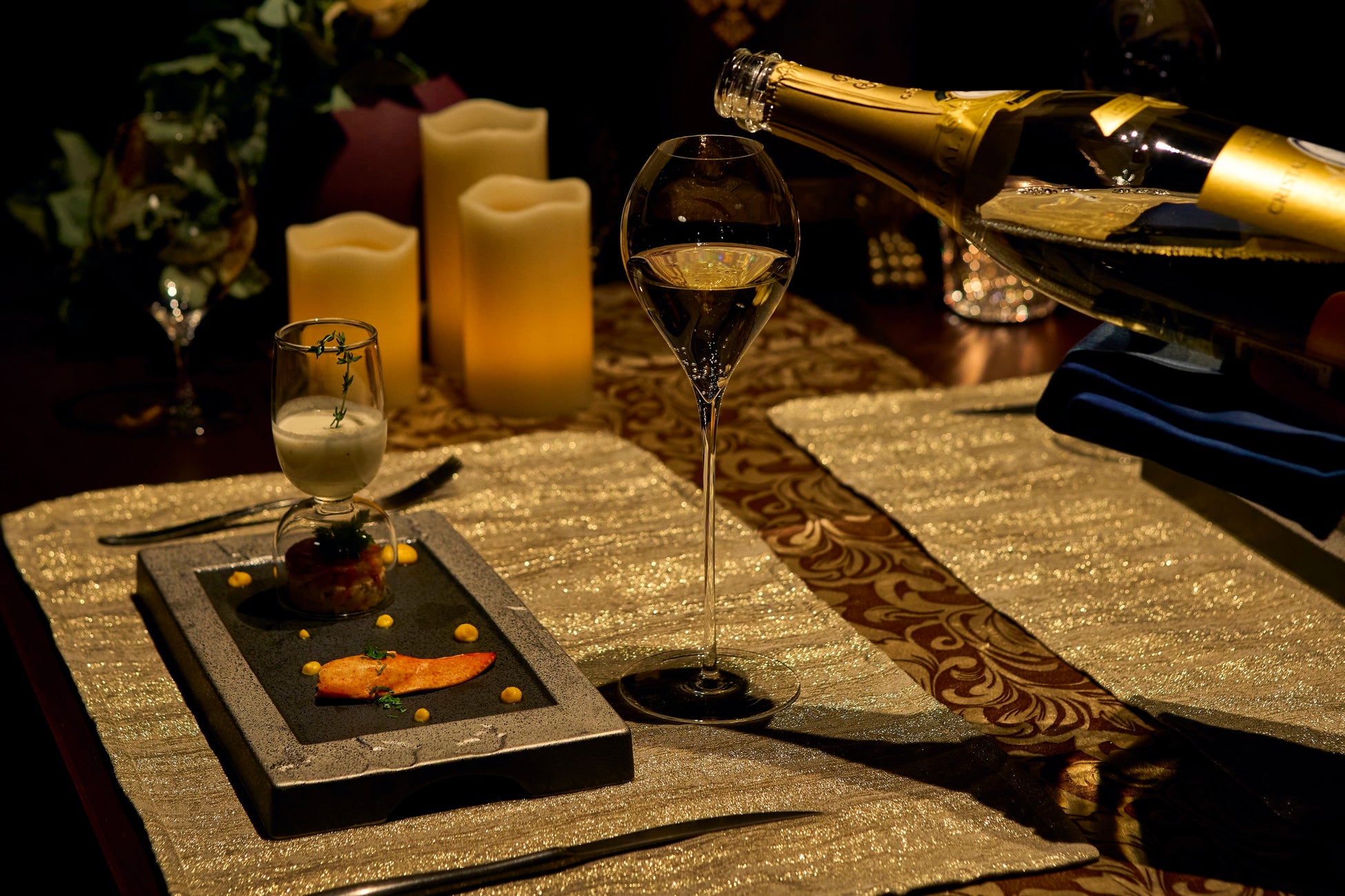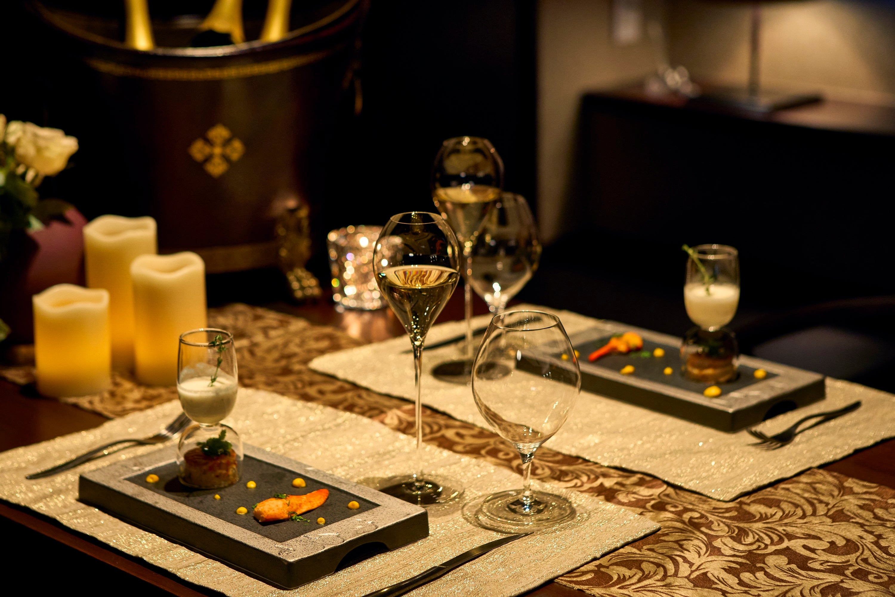 到着してすぐ近世ヨーロッパのような贅沢な空間で、チェックイン時から煌めく美しい泡と繊細な味わいの特別なシャンパーニュをご堪能いただけます。また、シャンパーニュに合わせた特別なウェルカムフードペアリングをご用意しておりますので、ご一緒にお楽しみください。