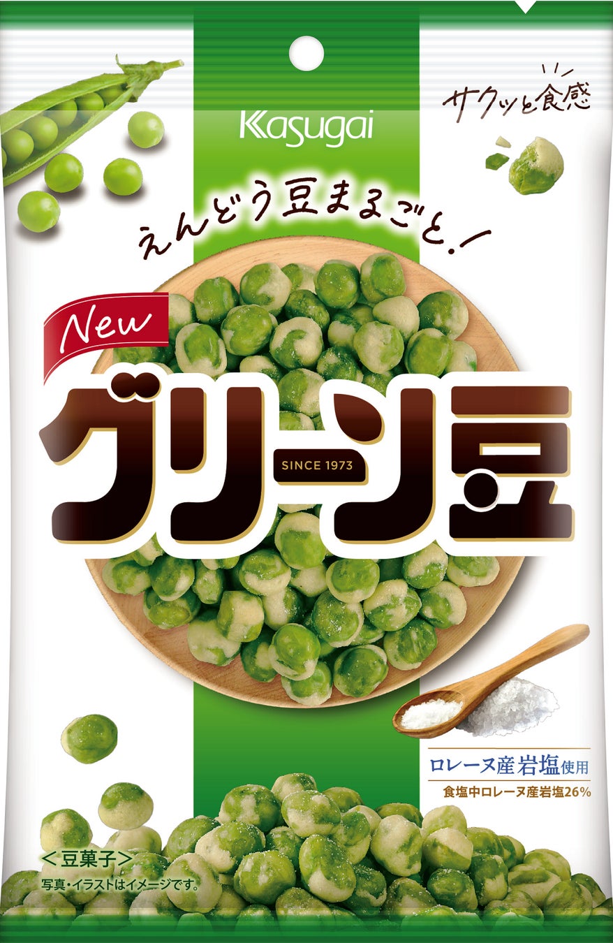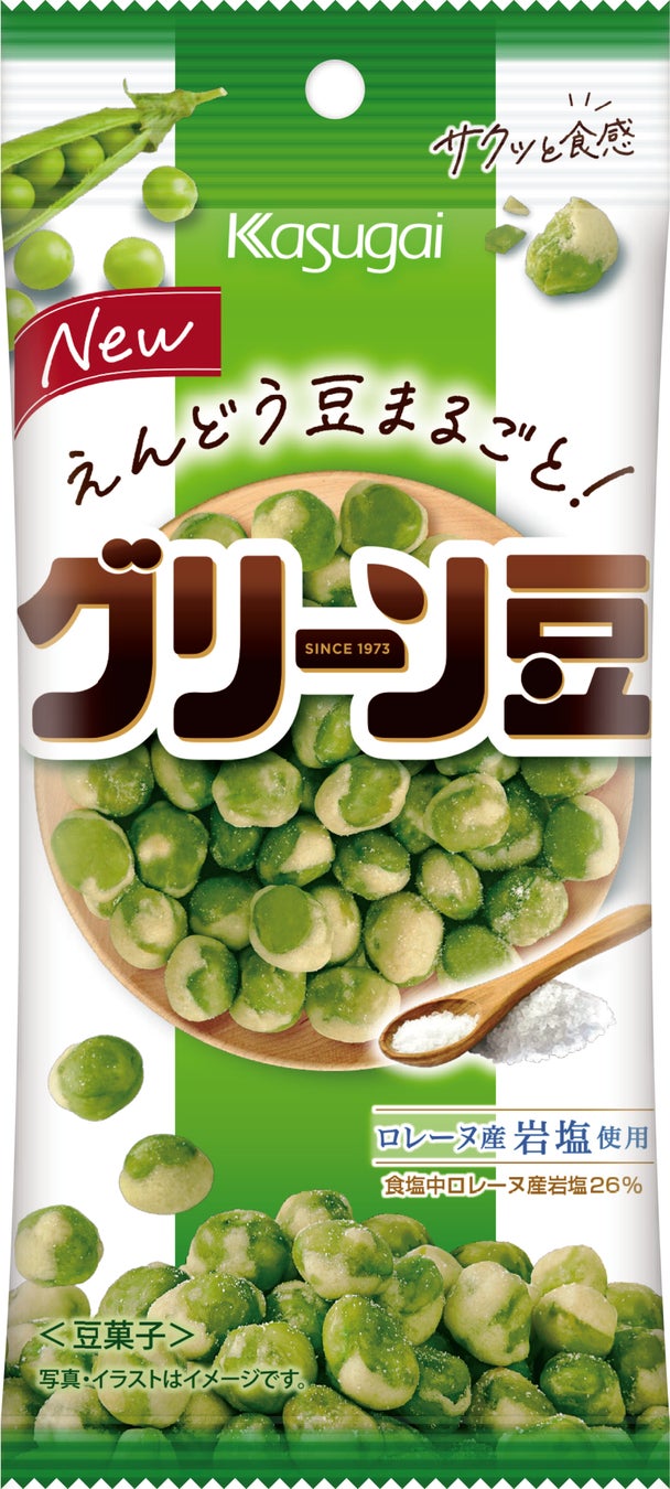 「グリーン豆」は、厳選されたえんどう豆を丁寧に二度揚げし、素材の旨みを逃さず、サクッとした食感に仕上げています。豆の美味しさをより引き立てるため、まろやかですっきりした味わいのロレーヌ産岩塩を使用。濃い豆の旨みや甘みと、香ばしく軽い食感で、ついまた手が伸びる止まらないおいしさを強化しました。