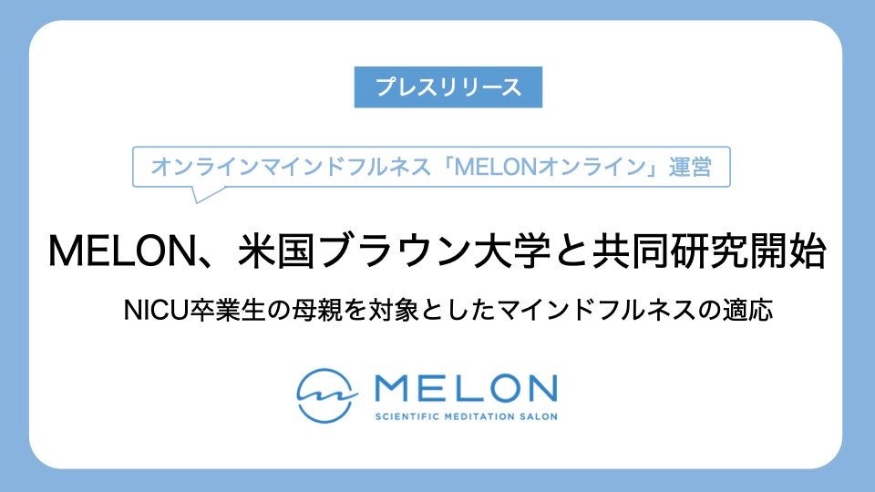 株式会社Melon(本社:東京都港区、代表取締役 CEO:橋本 大佑、以下MELON)は、米国ブラウン大学公衆衛生大学院(研究主任:鈴木健斗)で行われる「NICU(新生児集中治療室)卒業生の母親の方」を対象としたマインドフルネスの実証実験に協力することを発表いたします。