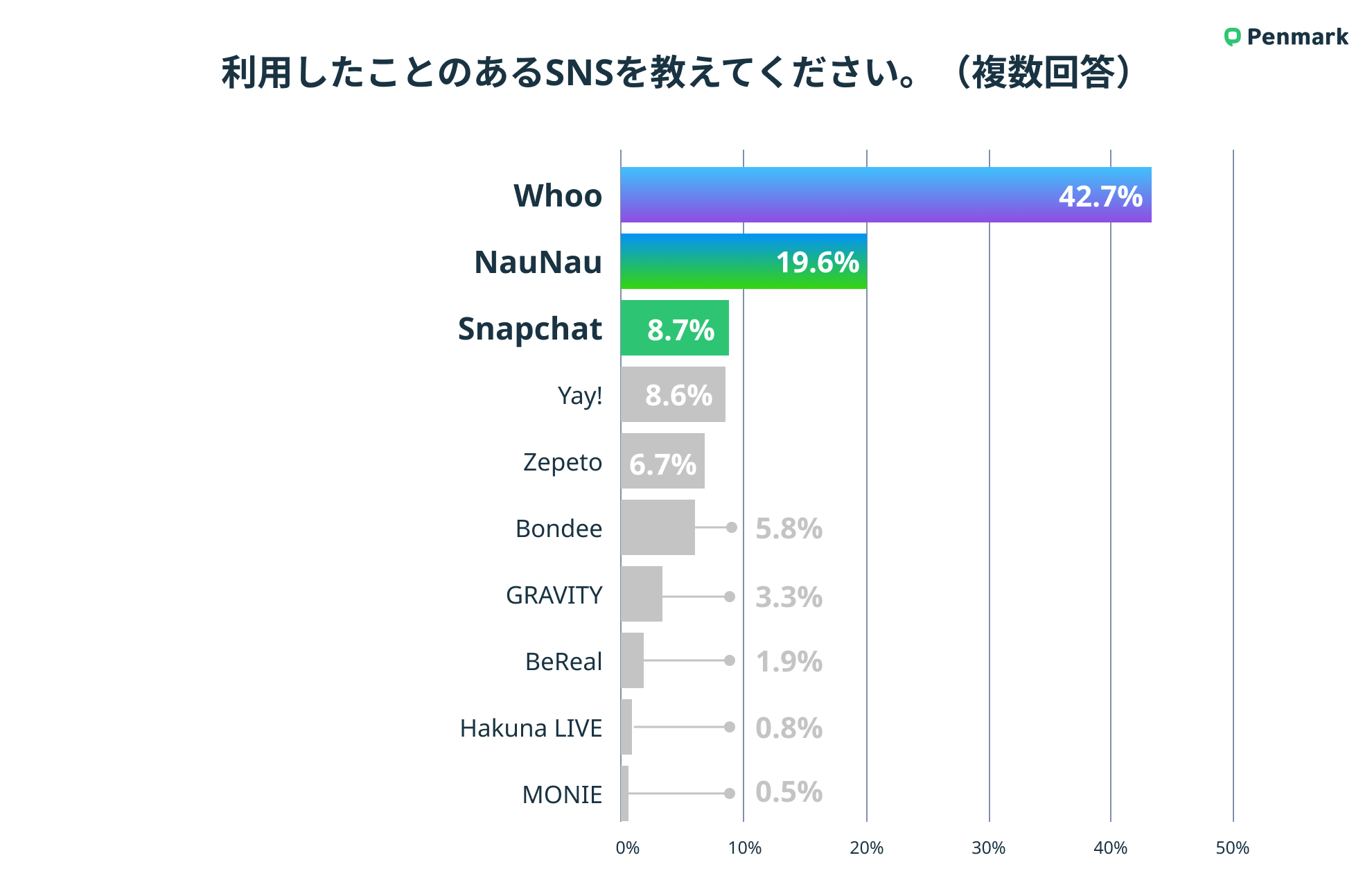 【高校生13万人調査】高校生が利用したことのある新SNS、1位はWhoo(42.7%)。その他SNSと20%差。