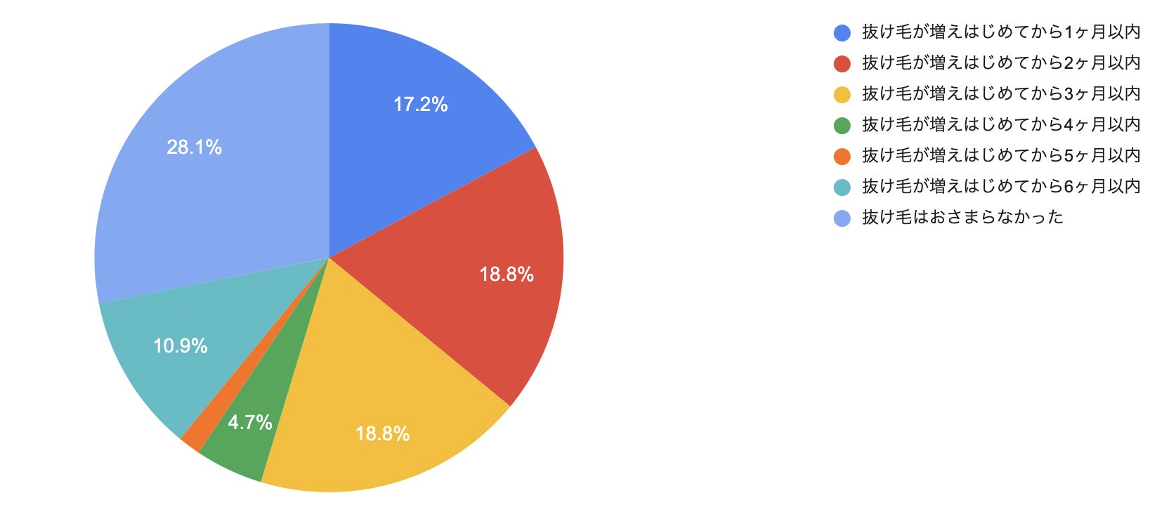 - 4.生活環境の変化による抜け毛はどのくらいでおさまりましたか?(期間)