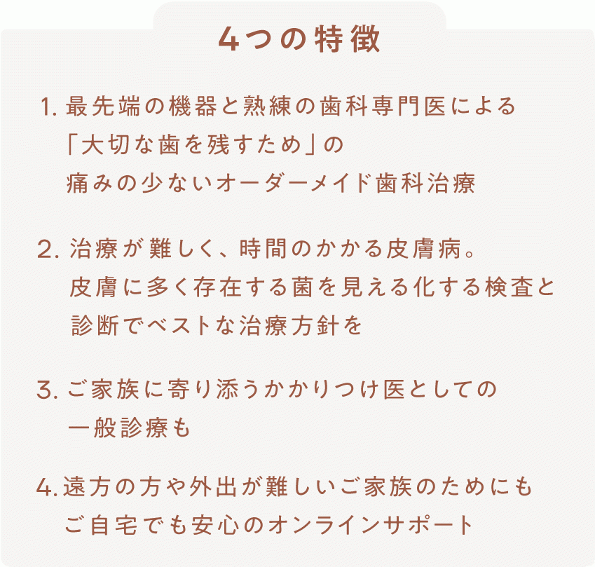 専門歯科/専門皮膚科/一般診療/オンライン診療