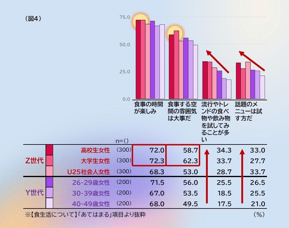 上記を満たしつつ、「食事を楽しむ」「友人とのコミュニケーションのきっかけになる体験価値がある」ことが、彼女たちの食ニーズを満たすカギとなりそうです。