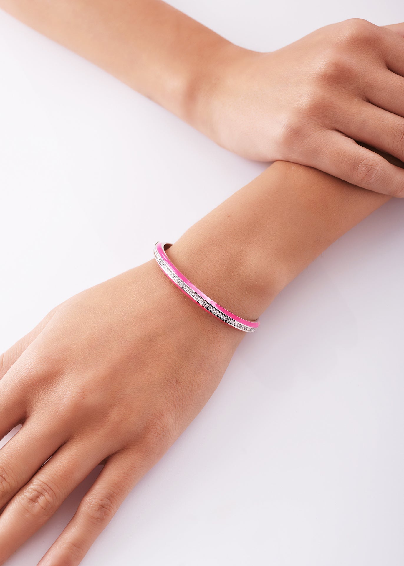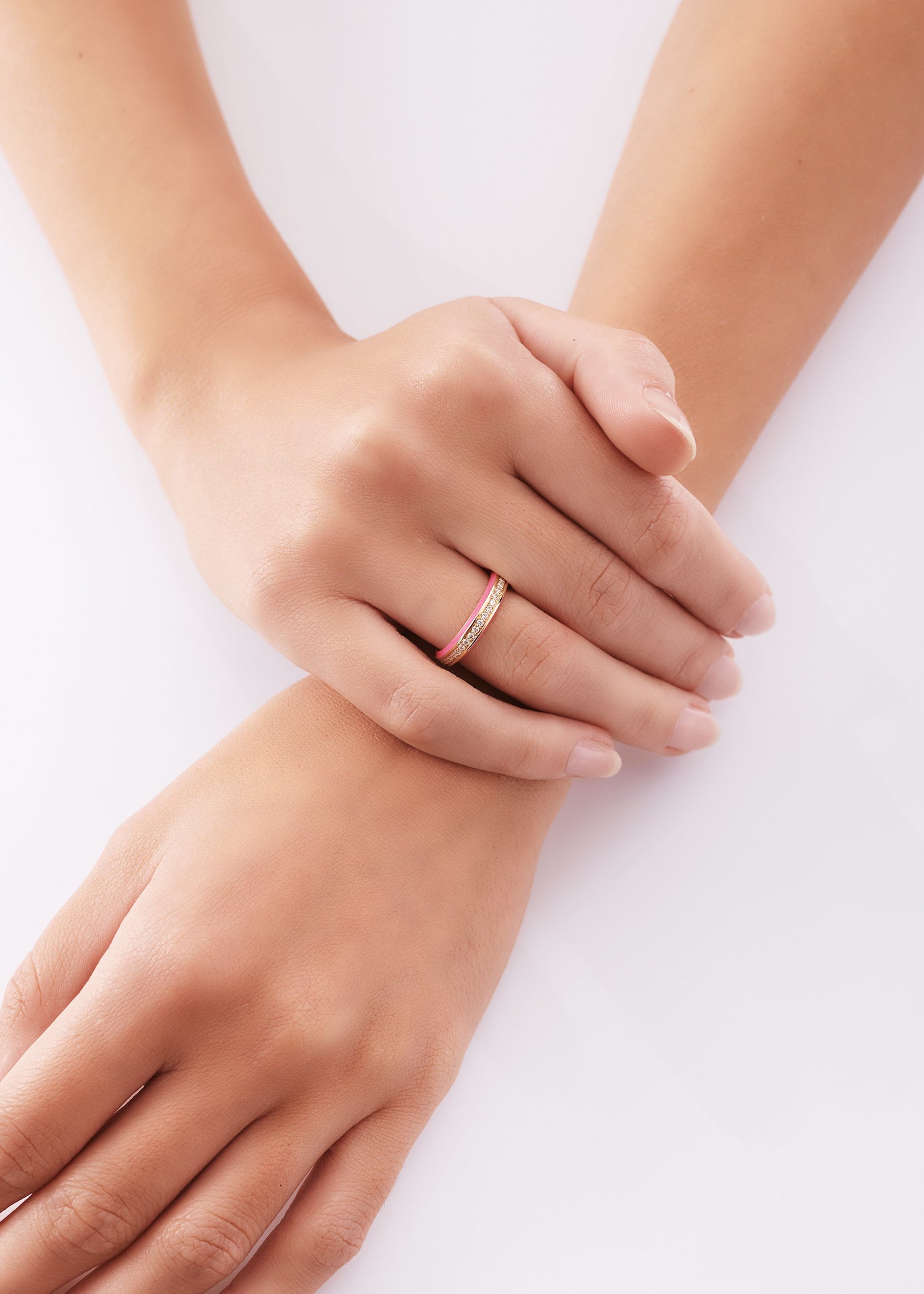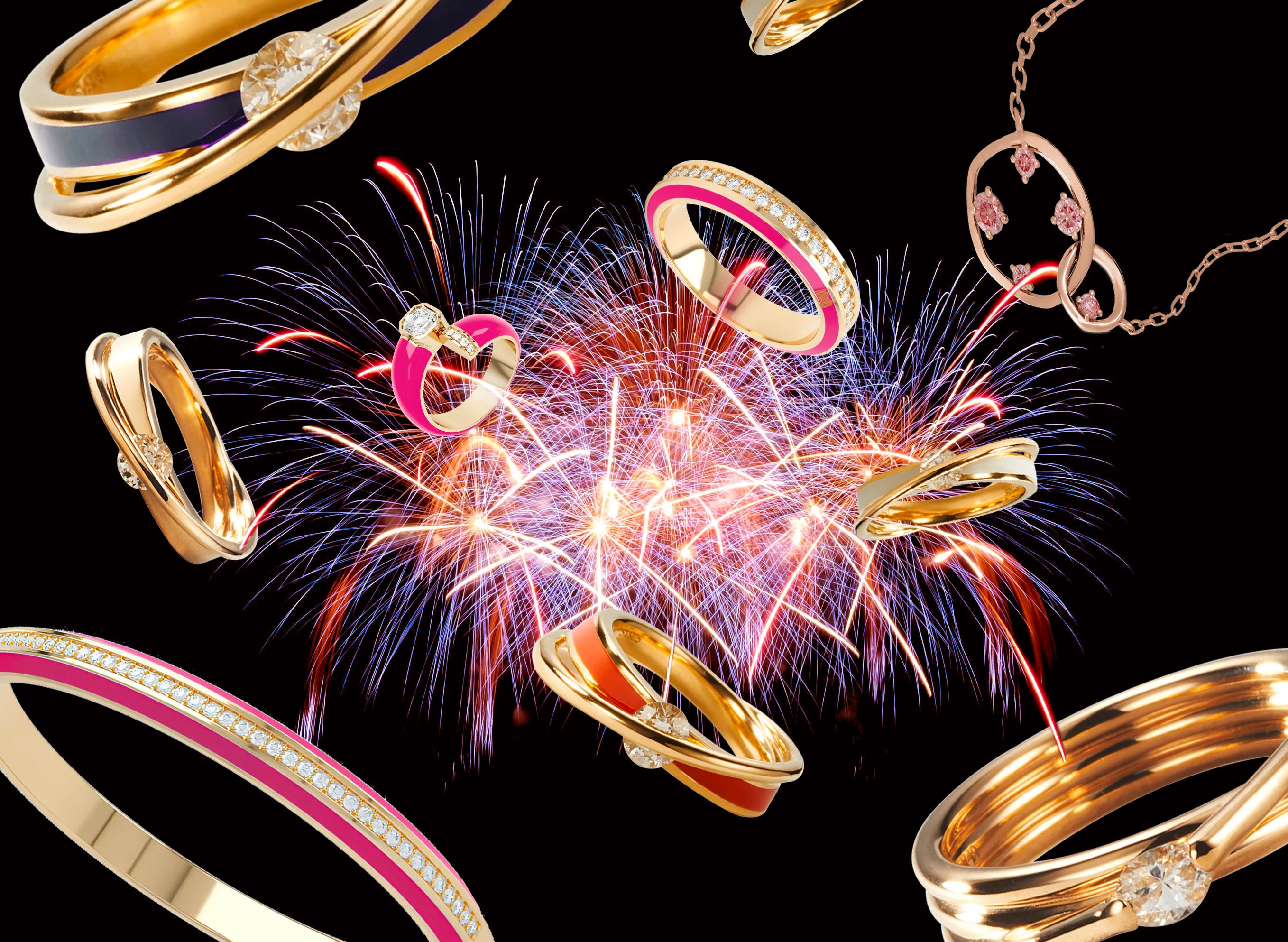 鮮やかな深紅やさわやかな青、万華鏡のような花火の色など、鮮やかな色合いが夏祭りの特徴です。この特別なコレクションで、TFR はエクスクルーシブラインであるHikariコレクションからOrbitネックレスの新しいアイテムをご紹介します。壮大な宇宙にインスピレーションを得たこのコレクションから、この 8 月に発売される新しいアイテムは、リサイクルゴールドのリングの周りにピンクのラボグロウンダイヤモンドが散りばめられています。エレガントなLOEV Eternityピンクエナメルバングルは、18Kリサイクルゴールドとブリリアントカットのラボグロウンダイヤモンドで製作されています。