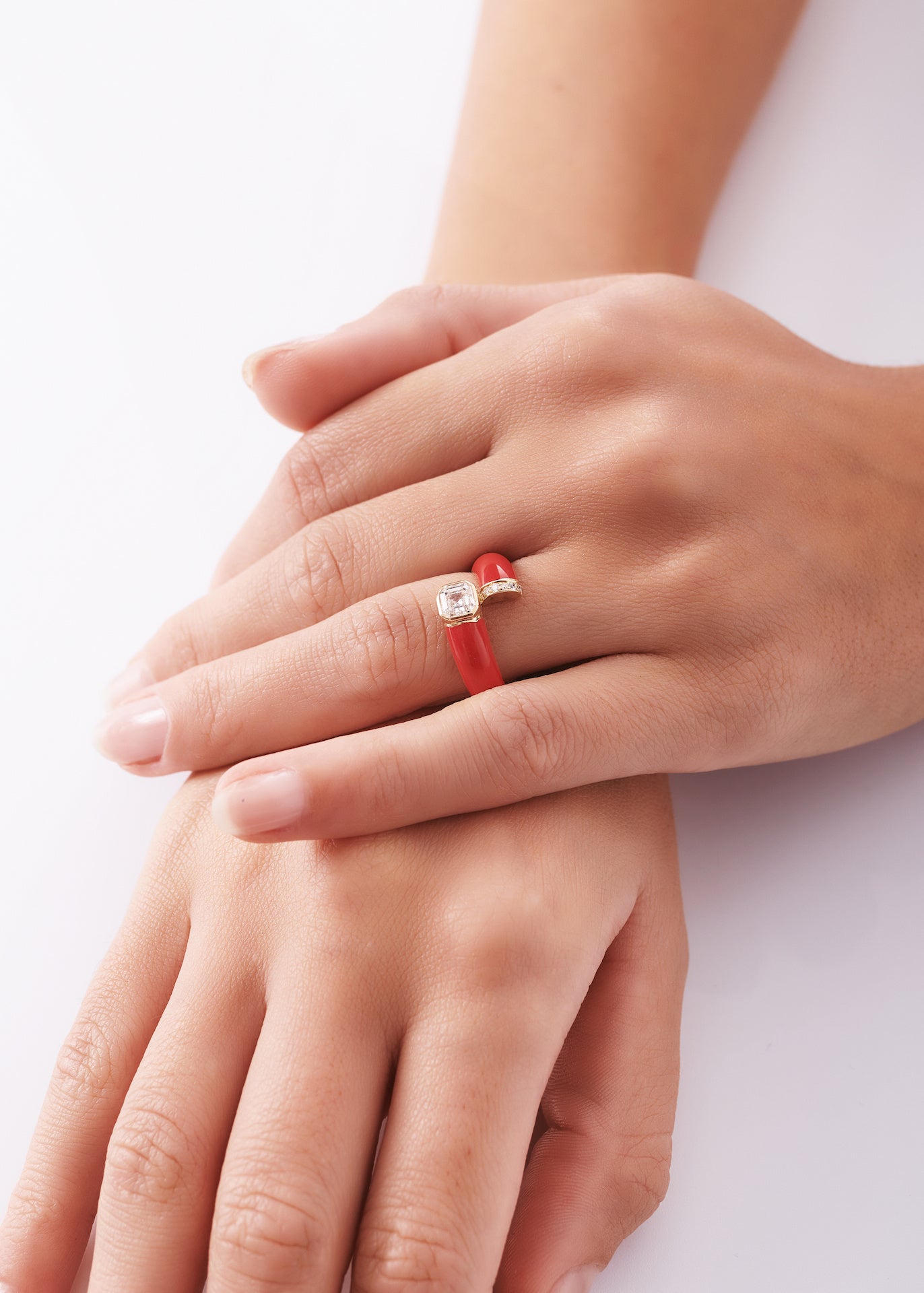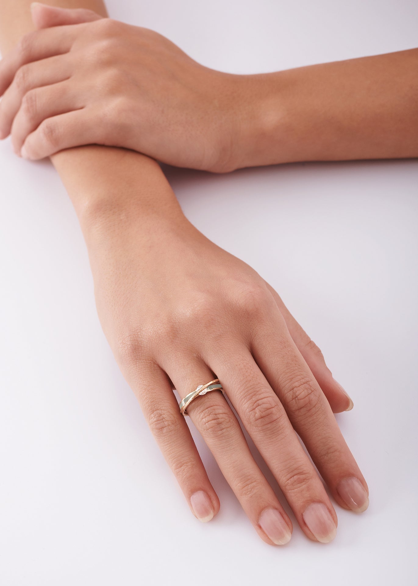TFRでは豊富なカラーのジュエリーを取り揃えており、優美な花柄に合わせたLOEV Toi et Moi Asscherピンクエナメルリングや、18Kリサイクル ゴールドのバンドが帯の折り目のようにいくつかのループになった、モダンクラシックなTerra Engage EGR1 ゴールドリングなど、浴衣に合わせる特別な一品に出会うことができます。