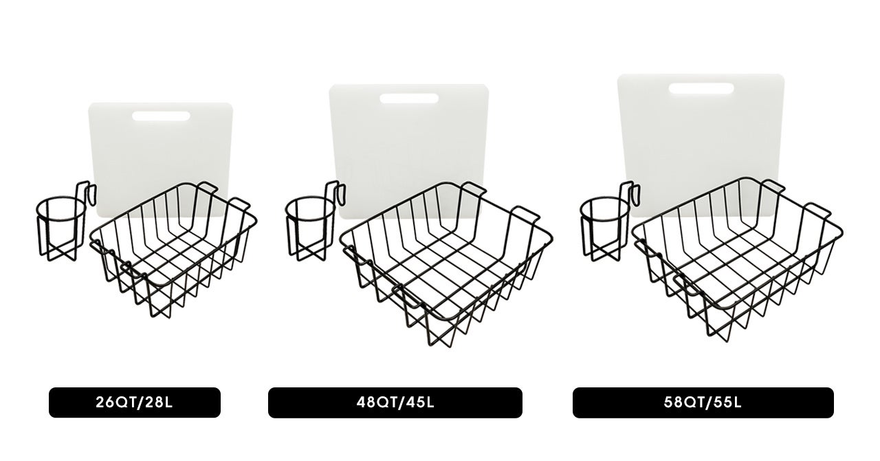 クーラーボックスの中を仕切り板を使って飲み物と食材で整理したり、バスケットには柔らかい食材や濡らしたくないものを保管するのに最適です。ドリンクホルダーはハンドル部分にかけて使えるので、開封したドリンクをちょい置きできる仕様です。