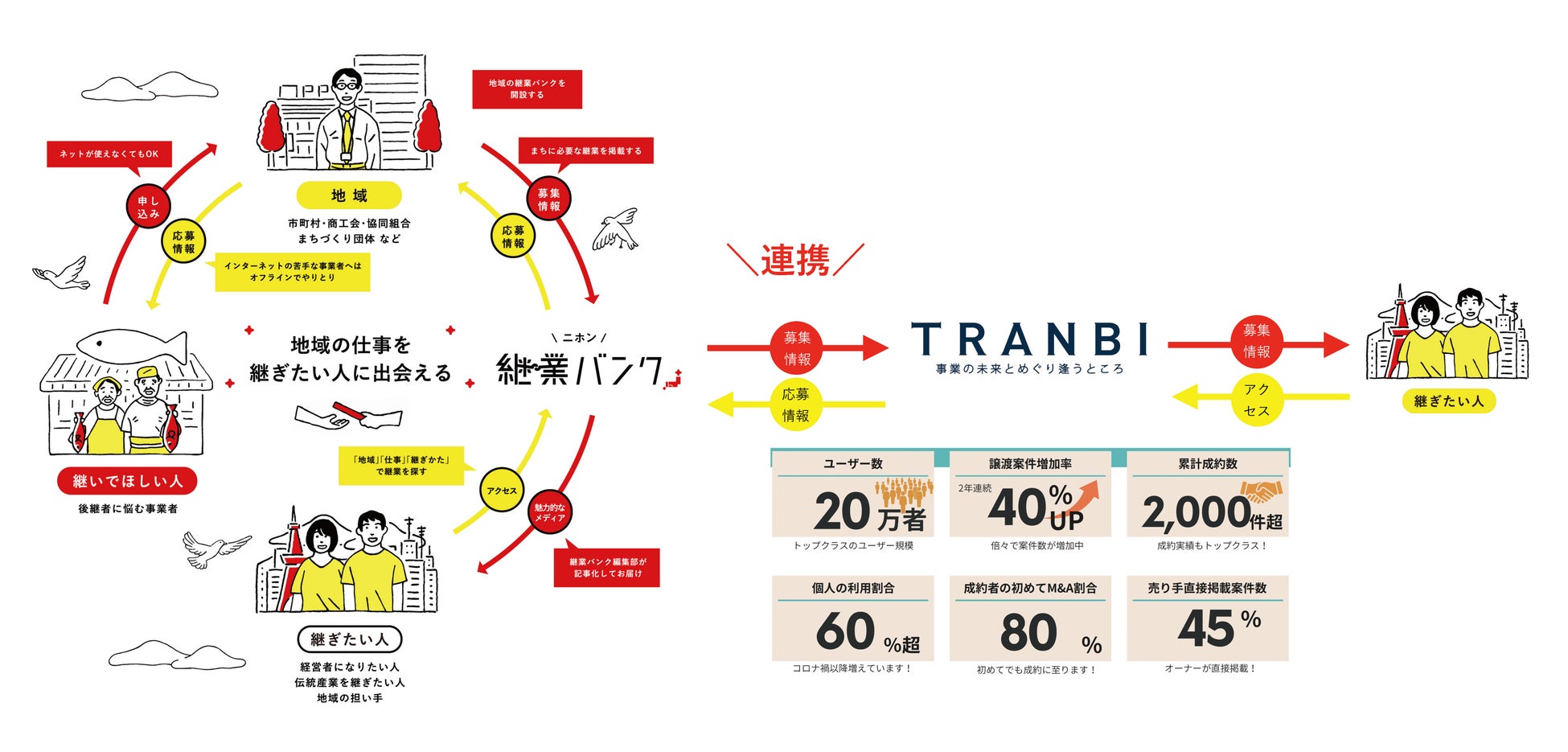 ニホン継業バンクとTRANBIが連携。オープンネーム/ノンネーム双方のマッチング機会を提供し、地域の後継者課題解決に取り組みます