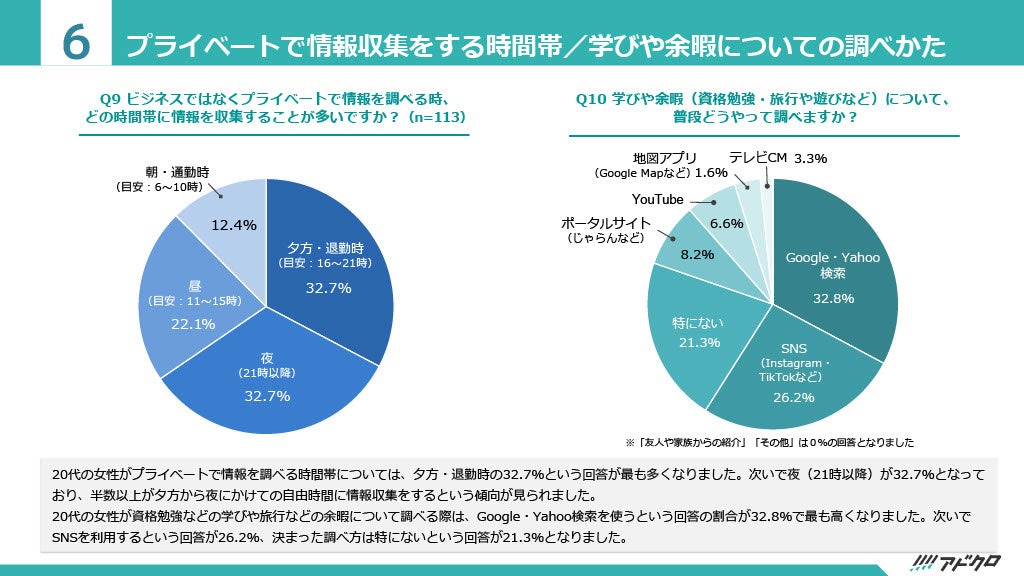 6.プライベートで情報収集をする時間帯/学びや余暇についての調べかた