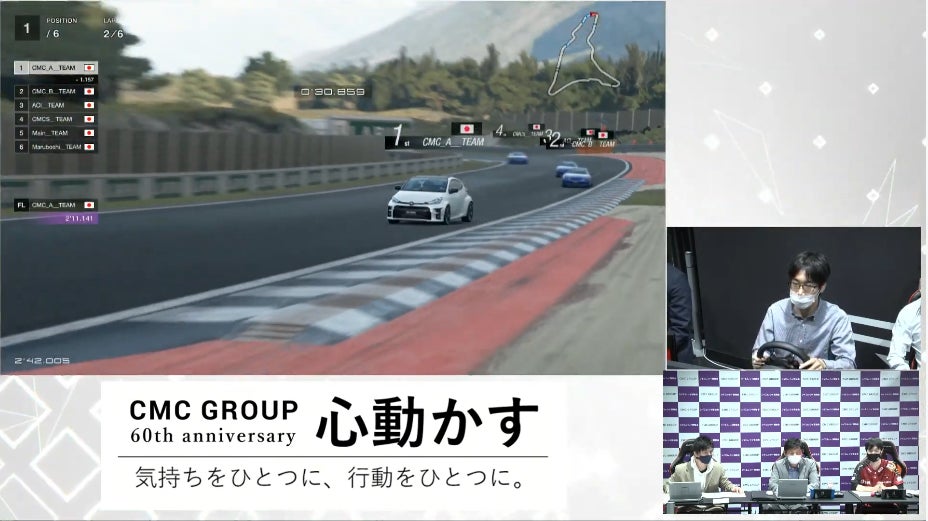 もう一つは『グランツーリスモSPORT』です。『グランツーリスモSPORT』は、実在のサーキットやオリジナルコースでのドライビングを楽しめるリアルドライビングシミュレーターであり、本業との親和性も高く、採用に至りました。株式会社シイエム・シイをはじめ、株式会社CMC Solutions、丸星株式会社、株式会社メイン、株式会社アサヒ・シーアンドアイのCMC GROUP 5社で事前に行われた予選を勝ち抜いた6チーム12人が全国の拠点から集まり、優勝を争いました。解説にはプロeスポーツチームSengoku Gaming所属の川上奏選手を招き、「FIA グランツーリスモ 2018」マニュファクチャラーシリーズ 初代チャンピオン(チームレクサス)の実績を持つ川上奏選手と上位チームとのエキシビジョンマッチも催されました。