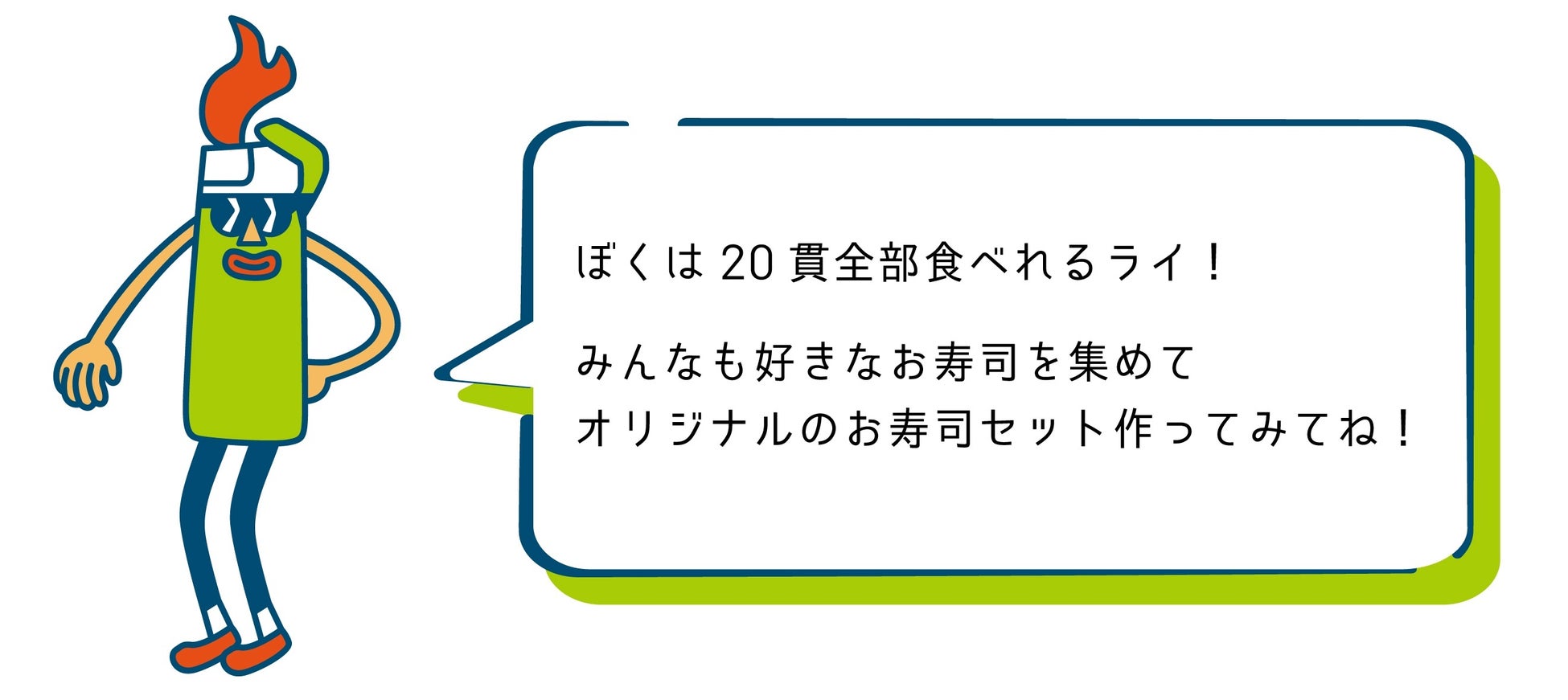 20種類の寿司ネタをラインナップ。ぜひ自分好みのスペシャルなお寿司の盛り合わせを完成させてください。