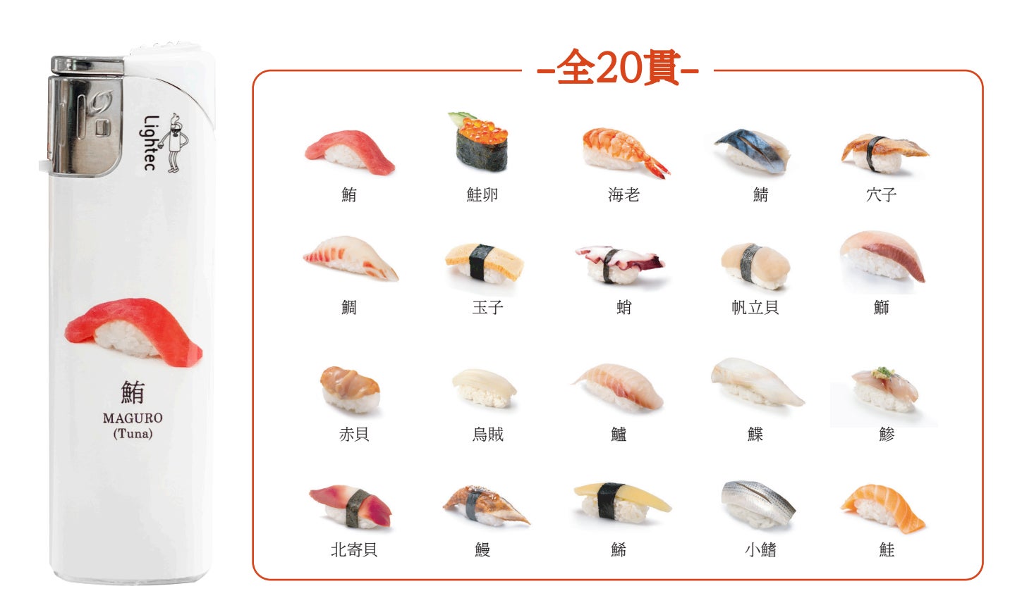 ライテック、寿司ネタをモチーフにした使いきりジェットライター「THE SUSHI COLLECTION」を発売