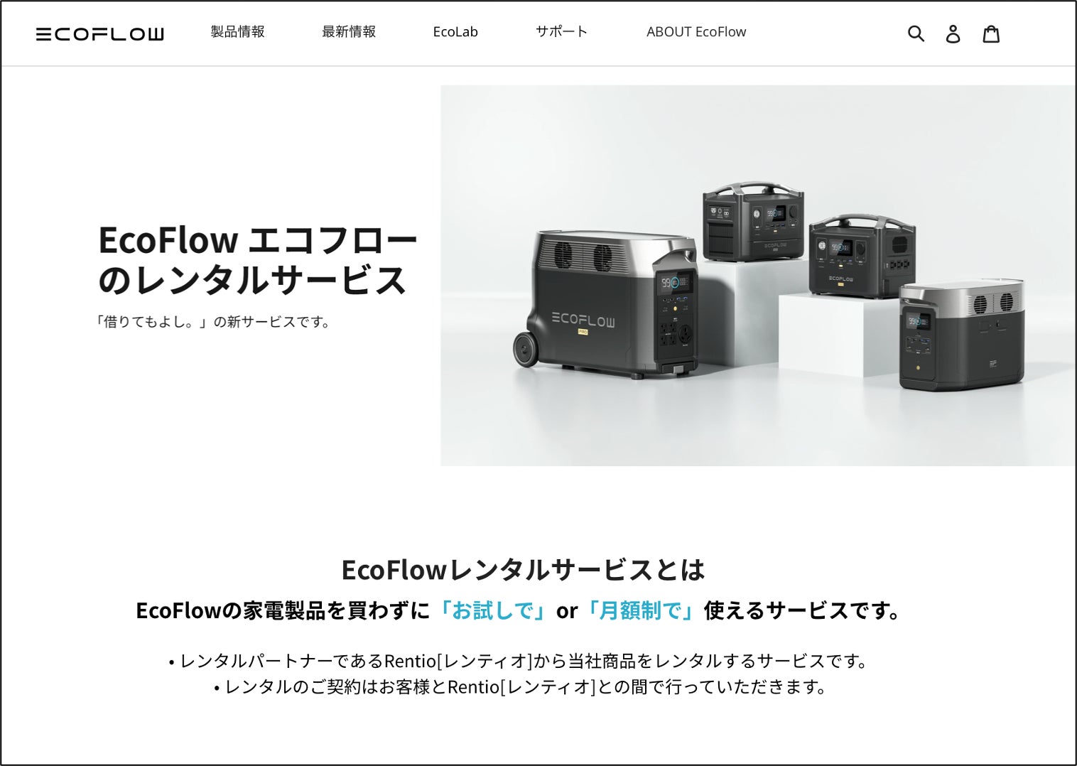 お客様の声にお応えするため、EcoFlowは家電のレンタルサービス「Rentio」と提携し、EcoFlowポータブル電源のレンタルサービスをご提供します。また、お客様にEcoFlow製品のレンタルサービスにより簡単にアクセスいただけるよう、EcoFlow公式サイトでレンタルサービスの案内ページを開設しました。