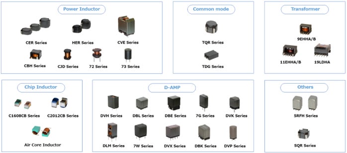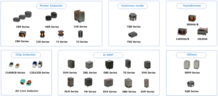 インダクタ(高周波用インダクタ・パワーインダクタ・D級アンプ用インダクタ)、トランス、アンテナなど