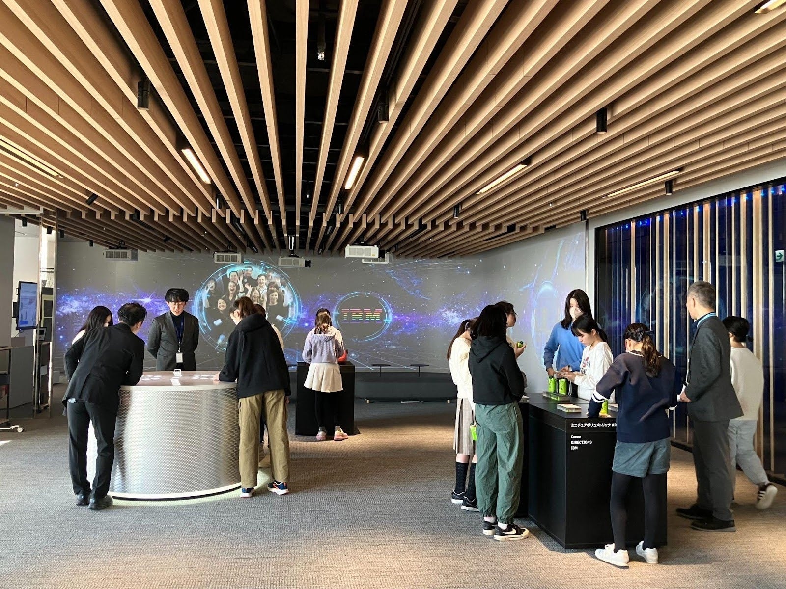 2024年にオープンした「IBM Innovation Studio Tokyo」の見学では、多様なコンテンツで先進的なテクノロジーを体感することができ、参加者は目を輝かせていました。アイデアソンでは「AIを活用し、カフェの満足度を高めたり客単価を上げる施策」「AIを活用し、教育の質を高め、勉強を効率的・効果的に行える施策」の2テーマが与えられ、チームに分かれて議論。活発な意見交換があり、短時間ながら興味深いアイデアが多く出ました。
