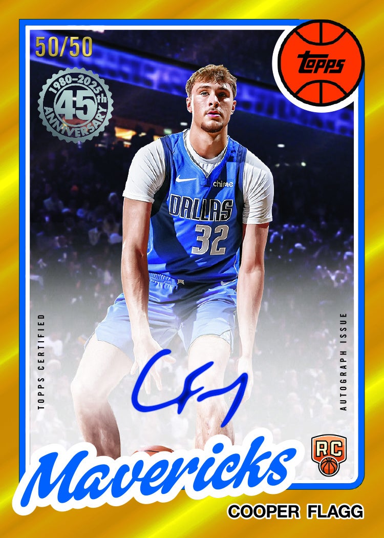 蘇ったToppsならではの象徴的デザインをはじめ、高校・大学・国際大会で圧倒的な実績を残し、2025年NBAドラフトで、ダラス・マーベリックスに全体1位指名されたスーパールーキー、クーパー・フラッグの収録も注目の商品です。