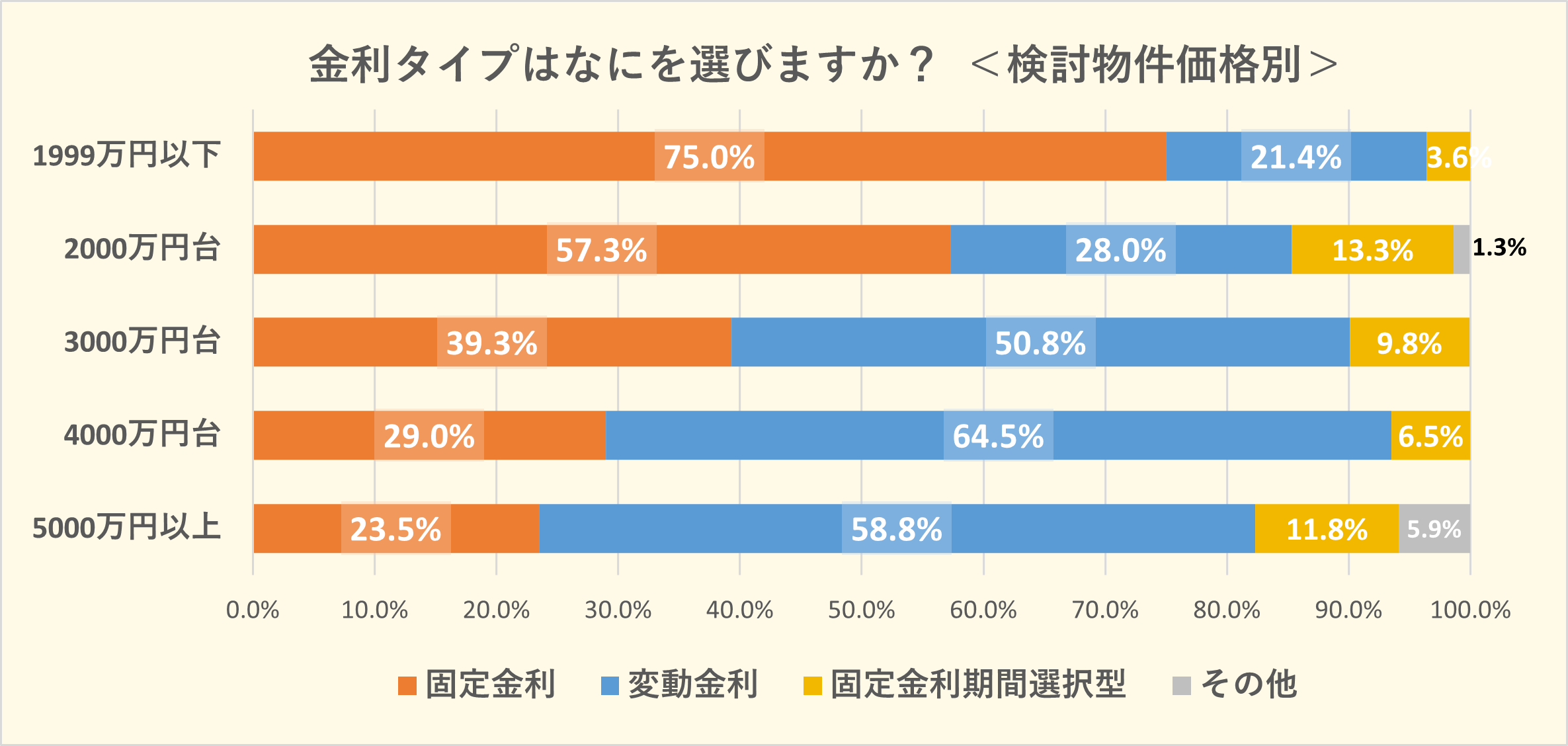 また、この「金利タイプの設問」について、回答者が検討している「物件の価格別」に分けると以下のような結果となりました。