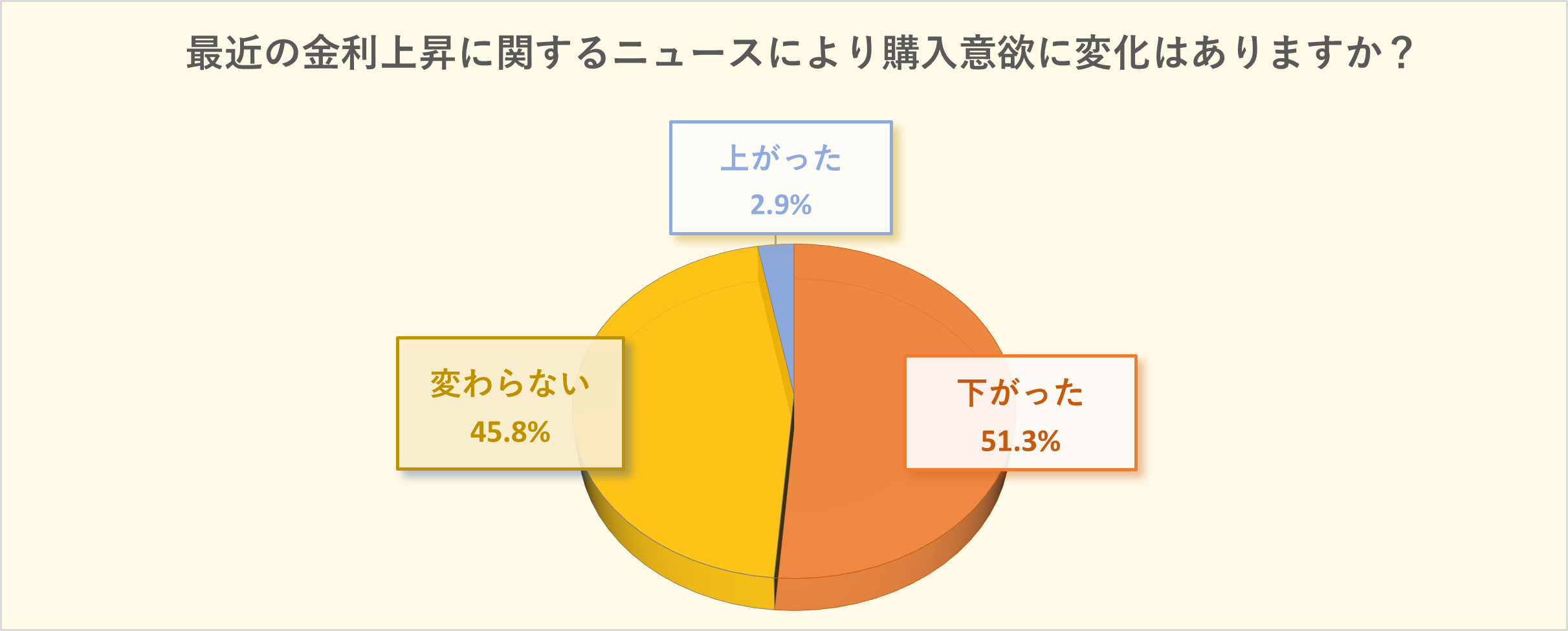 続いて、金利上昇のニュースによる「購入意欲の変化」についての質問です。