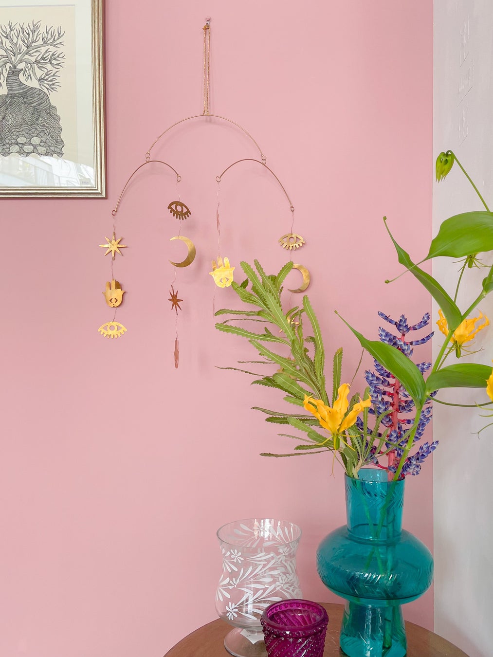 OPENを記念して、税込33,000円以上お買い上げいただいたお客様にノベルティとして、アンティーク風のゴールド仕上げでエスニックなモチーフを使用したモビールをプレゼントいたします。