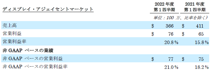 2022年度第2四半期の売上高見通しは、およそ63億5,000万ドル±3億ドルです。これにはサプライチェーンのひっ迫が続くと予想される影響も織り込まれています。非GAAPベースの希薄化後1株当たり利益は、1.75ドル~2.05ドルの範囲を予想しています。