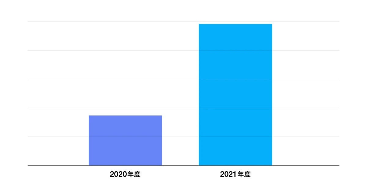 2020年度と2021年度の年間採用決定者数の変化について調査を実施しました。これによると年間採用決定者数は前年度比3倍となっており、副業・複業の一般化が観察されます。