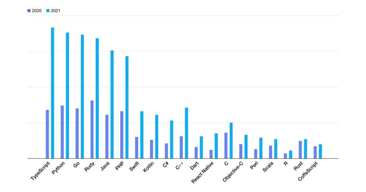 2. 複業・複業人材のプログラミング言語別採用決定者数はモダン言語ほど優位に