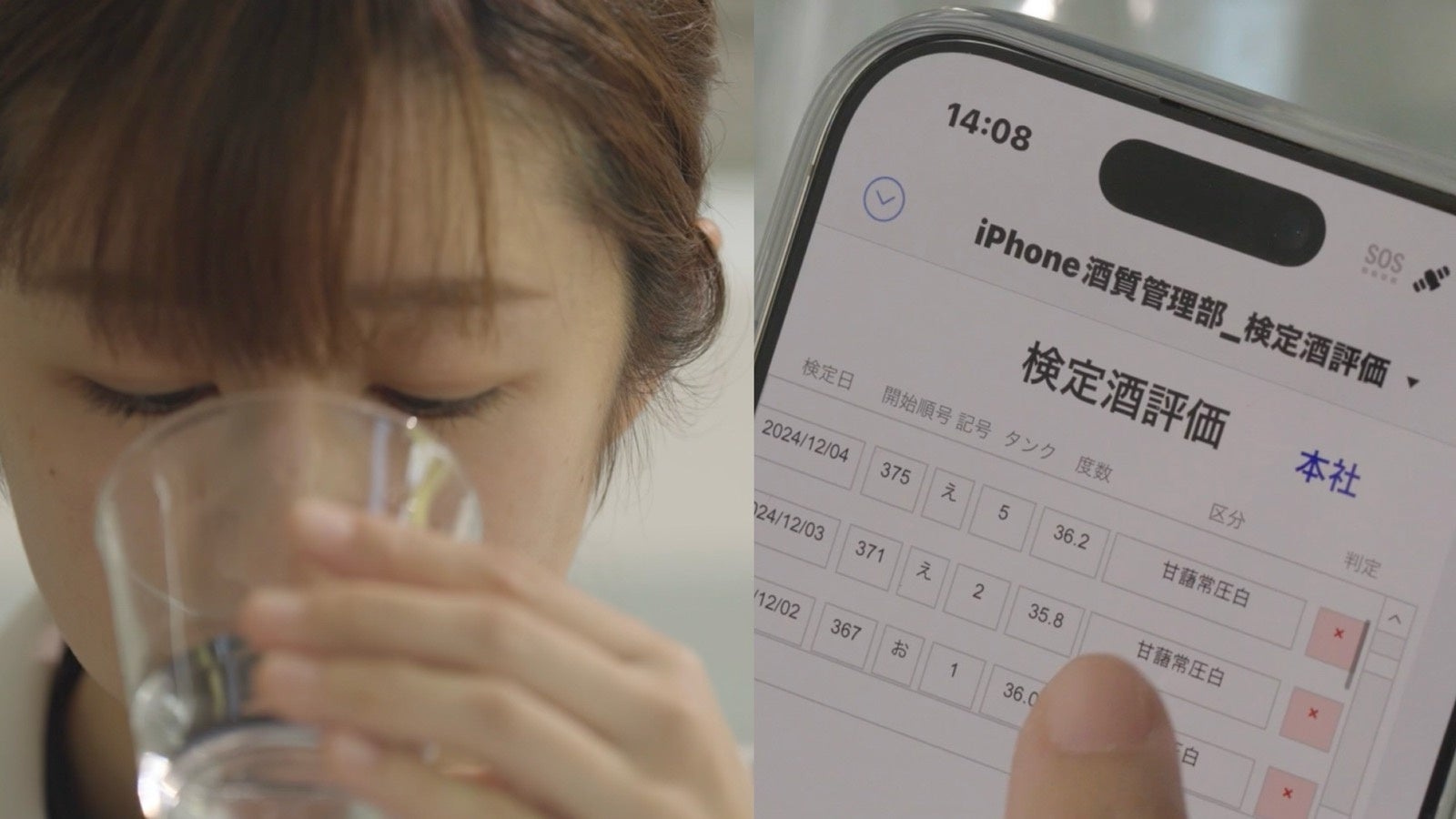 酒質管理部では、「味わい」データをデジタル化。iPhone を使い FileMaker の検定酒評価アプリに、焼酎の品質を評価した数値を入力しています。「味わい」のデジタル記録と仕込みデータの連携により、商品開発のスピードと精度の向上につながることを期待しています。