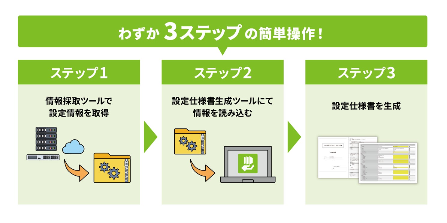 ■ 3ステップ・最短10分で”そのまま提出できる”設定仕様書を自動生成