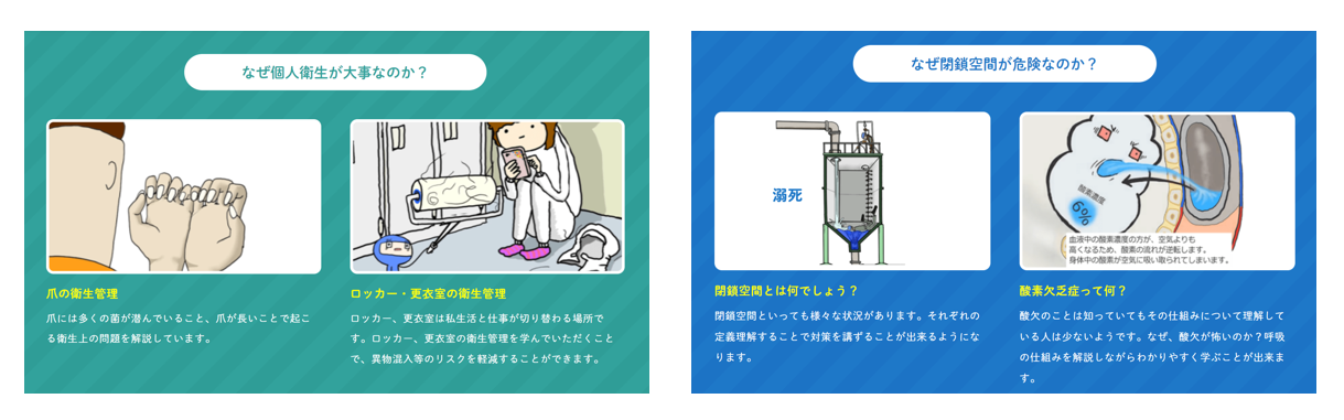 •労働安全衛生教育と食品衛生教育に必要な教材のさらなる充実化