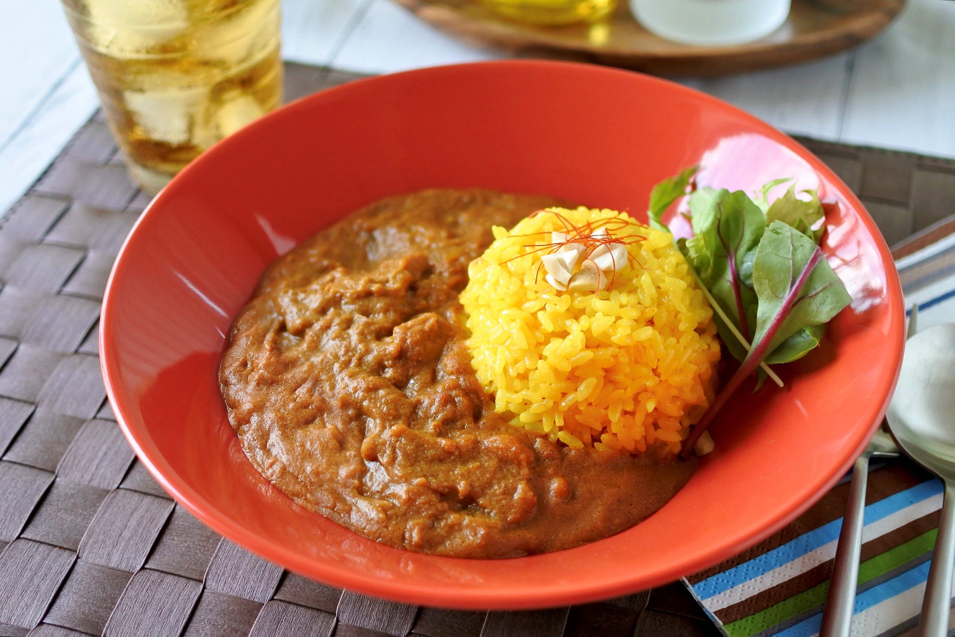 トマトの爽やかな酸味と、バターやカシューナッツなどの深いコクに、まるごとペーストにした瀬戸内海産の天然海老を加えたバターチキンカレーです。