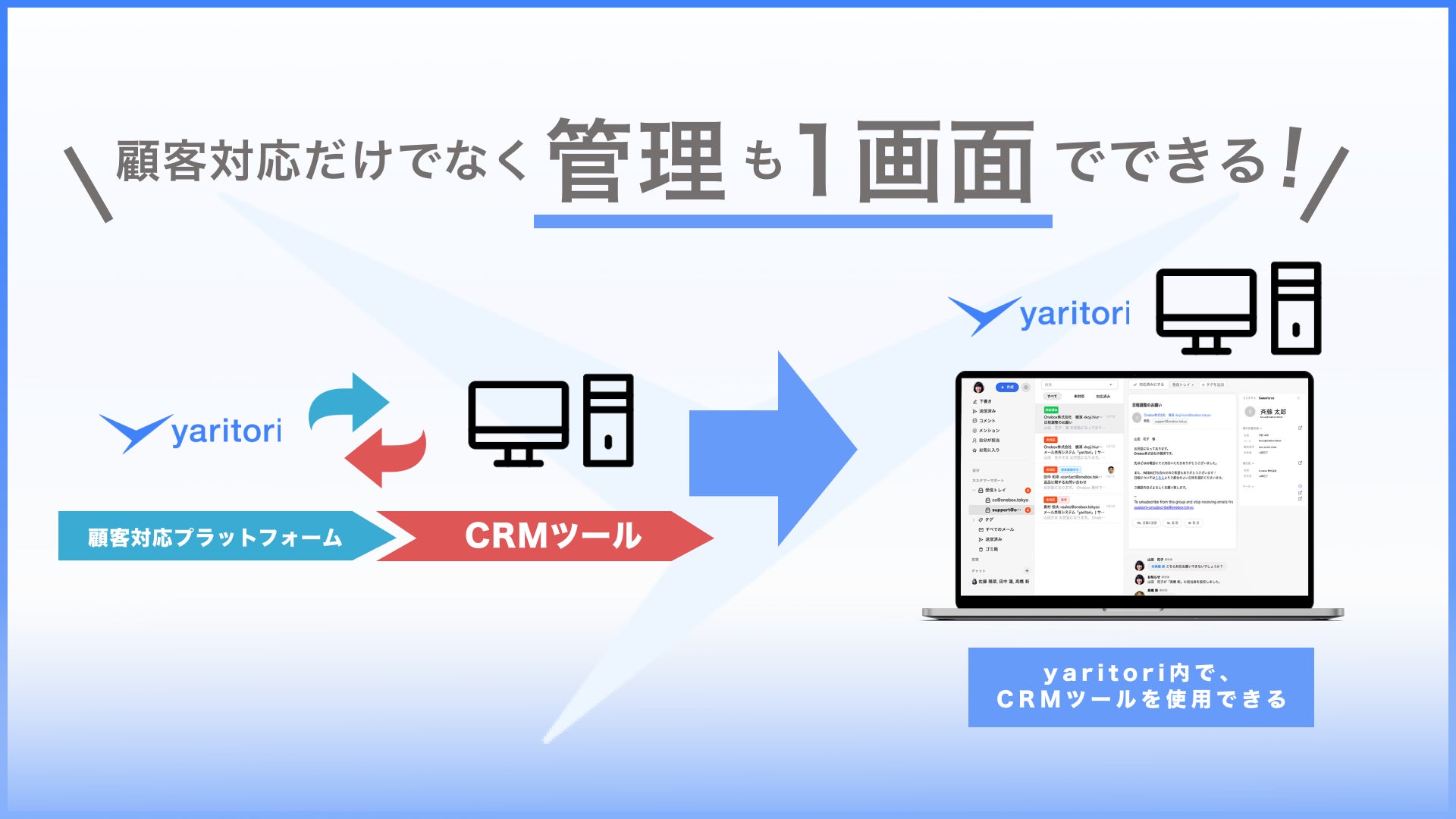 これまで、営業・CS担当の顧客対応の効率化を軸に多くのお客様に価値提供していくなかで、顧客対応だけでなく、顧客情報を同時に管理したいというご要望を多く頂いておりました。具体的には、すでにご利用頂いているCRMツールと「yaritori」のシステム間の行き来が頻発し、CRMツールでの顧客情報の記録におけるヒューマンエラーが課題が散見されておりました。