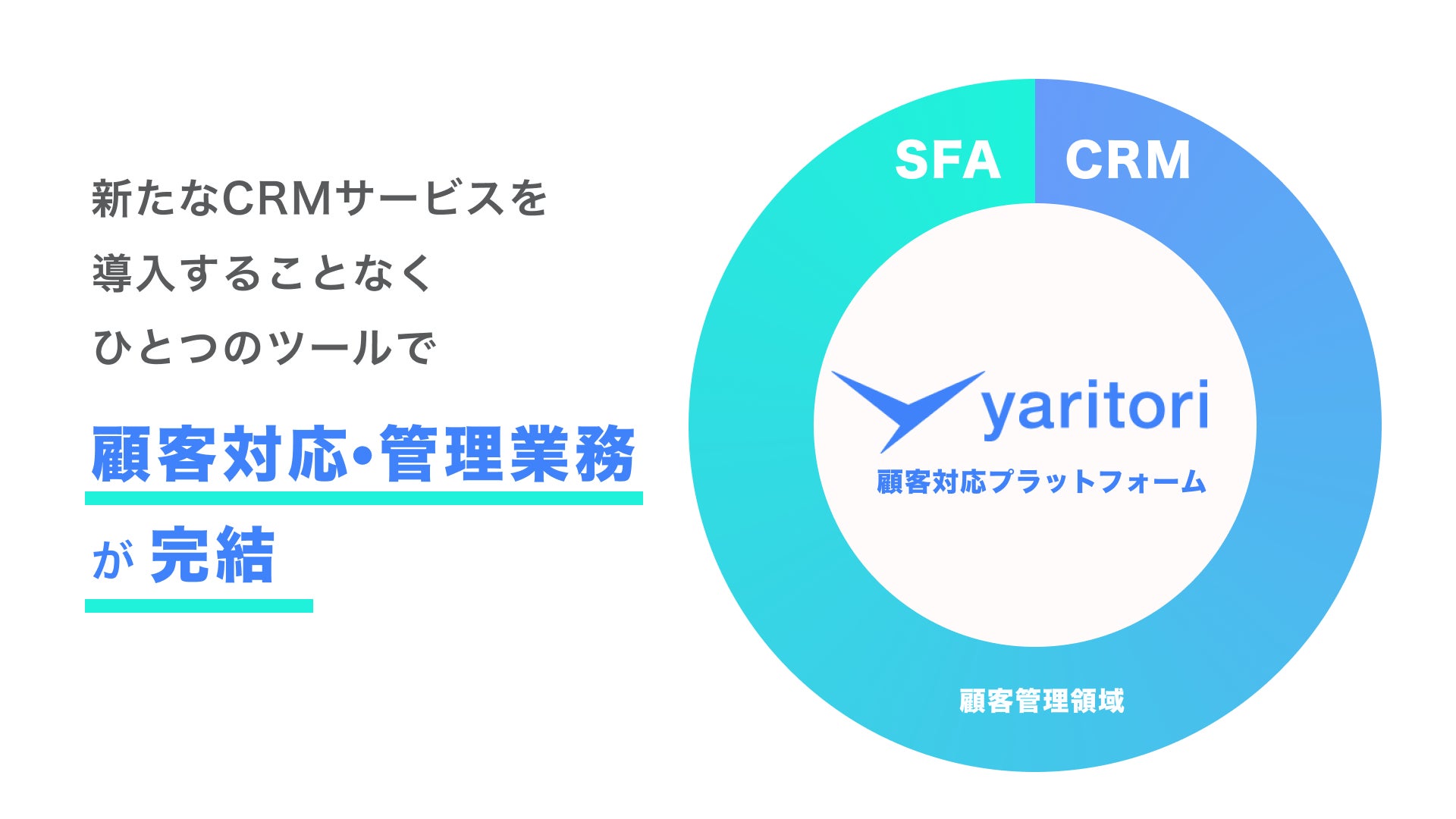 この度、「yaritori」は顧客対応だけでなく、顧客管理(SFA・CRM)※1 も含めた顧客対応プラットフォームに進化します。