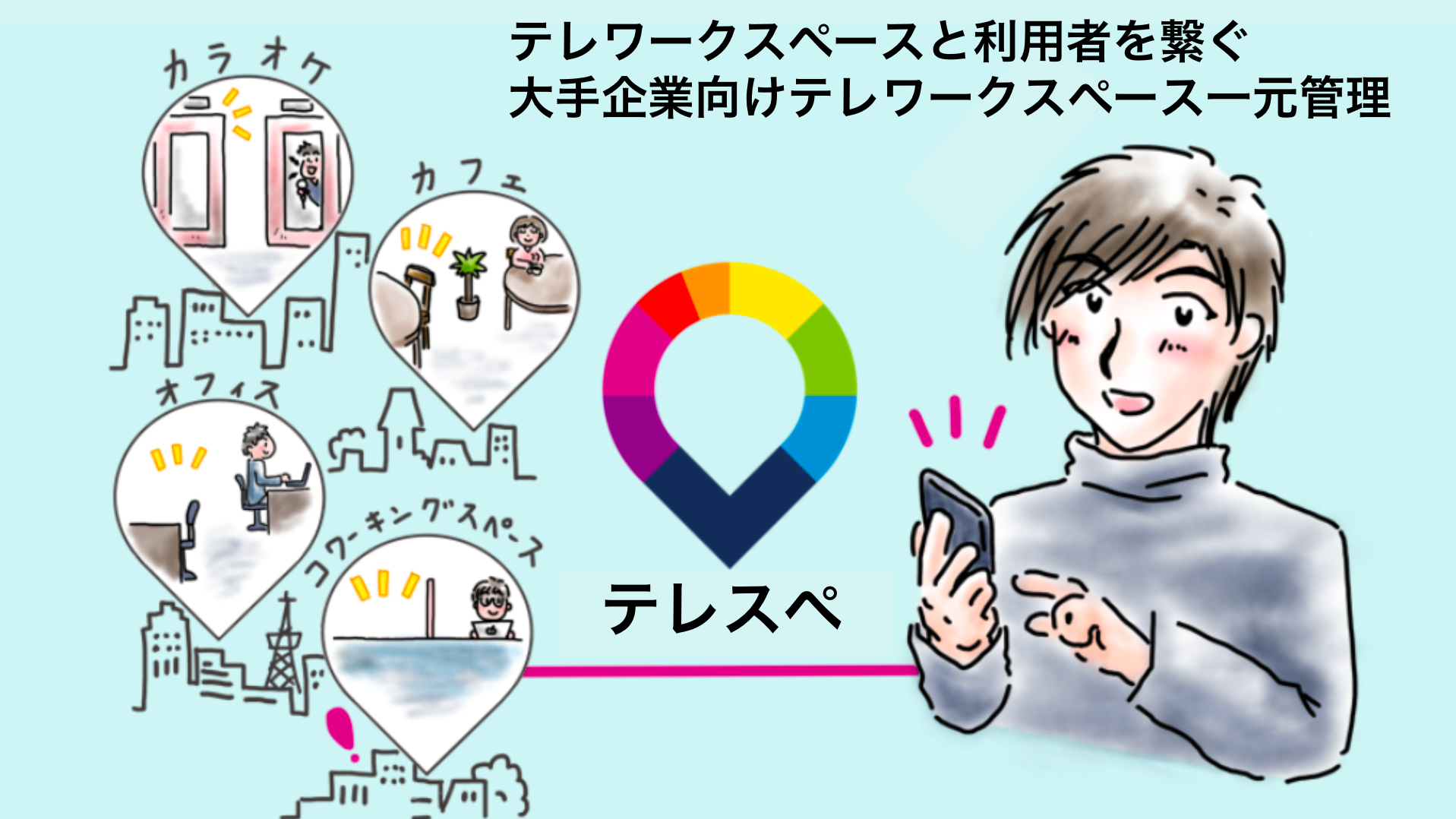 テレワーク・テクノロジーズは、「いつでも、どこでも、だれでも、働ける社会」の創造をビジョンに掲げ、テレワークスペースの貸し手と借り手を結ぶ「テレスペ」を開発・運営しているベンチャー企業です。