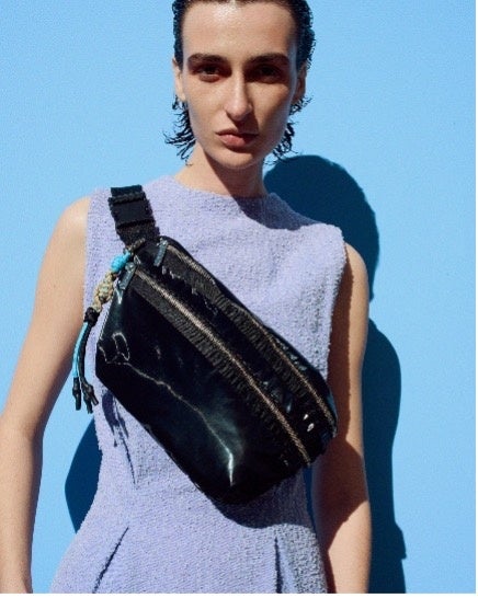 ビンテージ感のあるメタルジップデザインとオリジナルのコードチャームがアクセントのベルトバッグ。手持ちのチャームを下げられる小さめのループがバッグの両サイドに付いており、トレンドを取り入れながら自分だけの仕様にカスタマイズが可能。500mlのペットボトルを入れても余裕のある収納力も備えます。