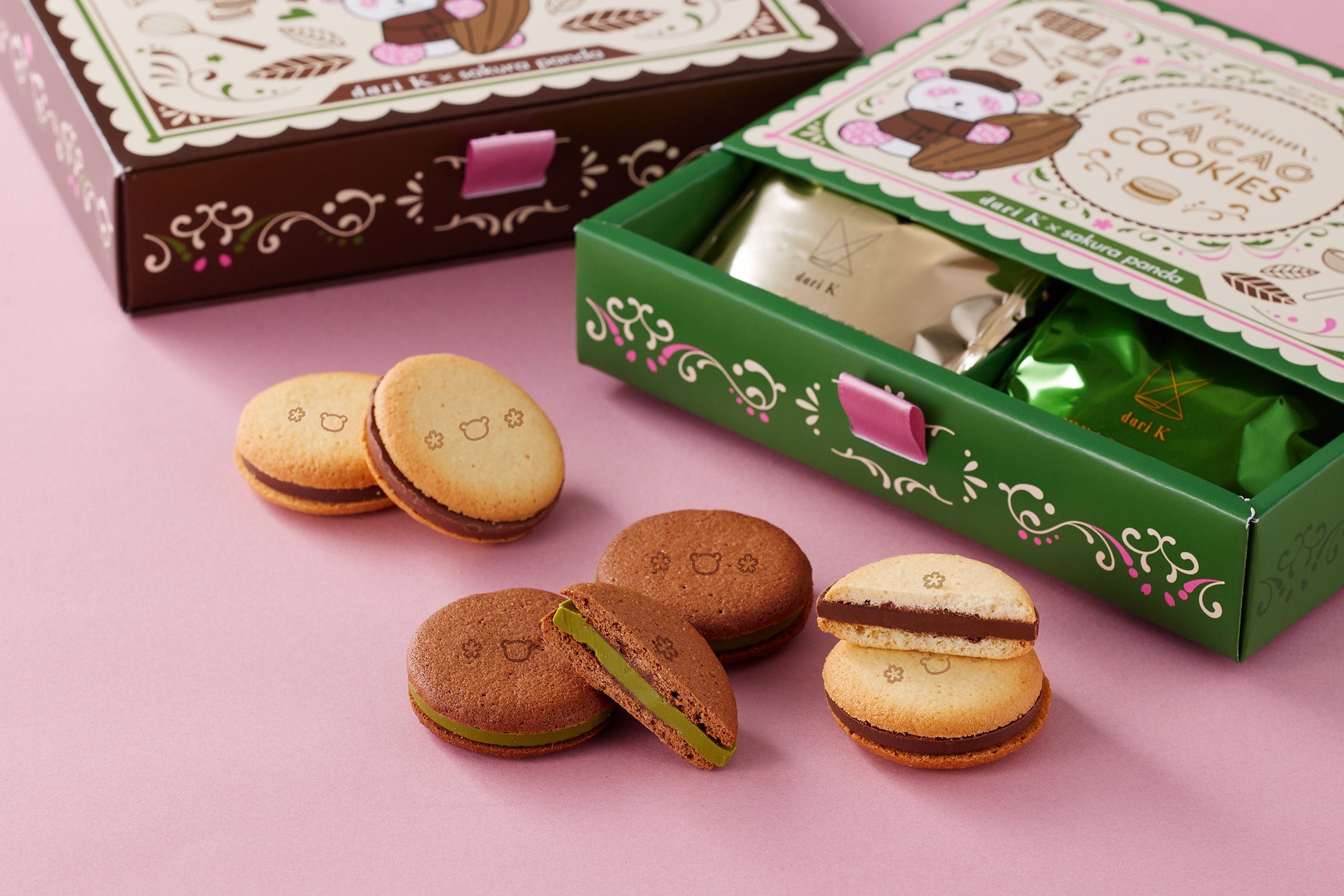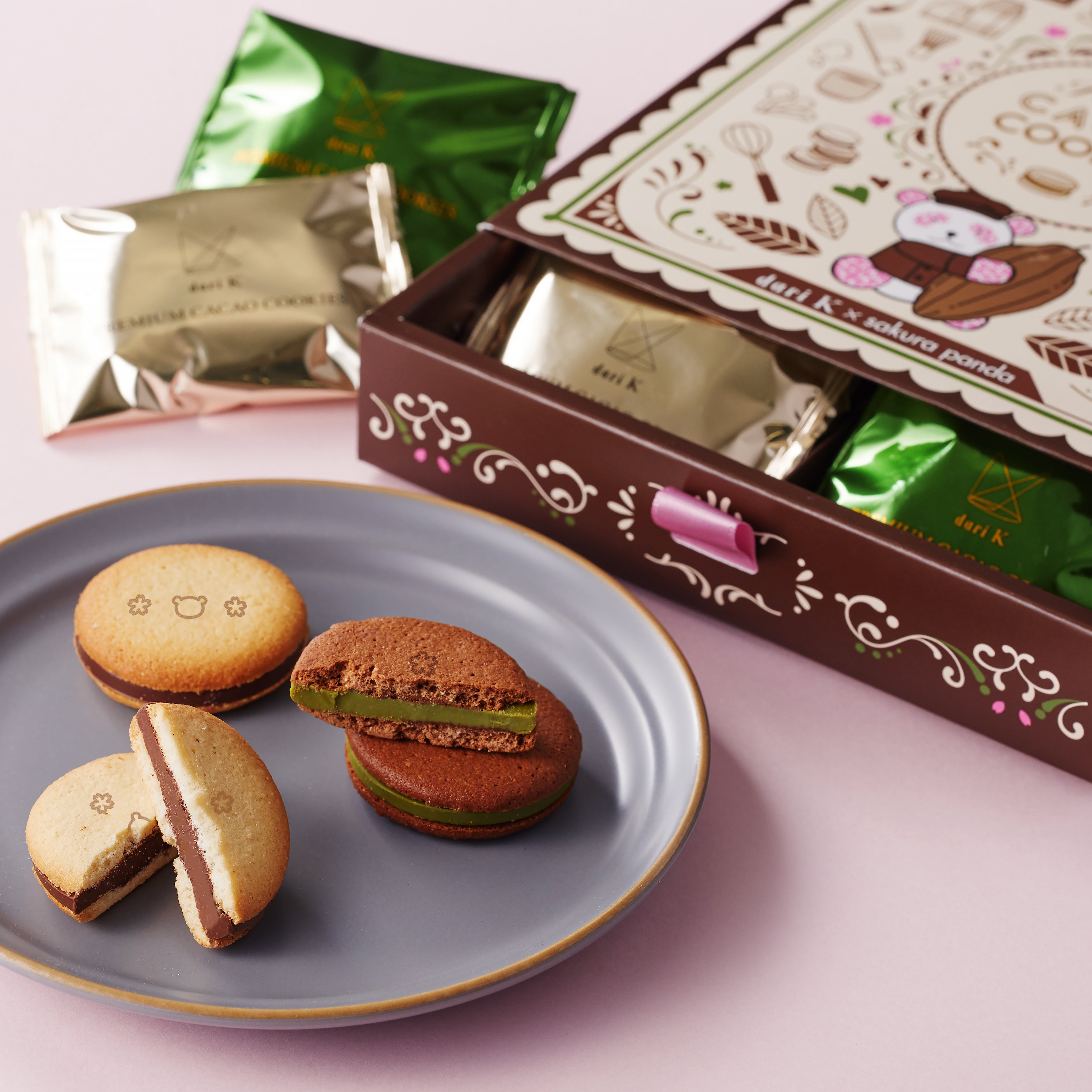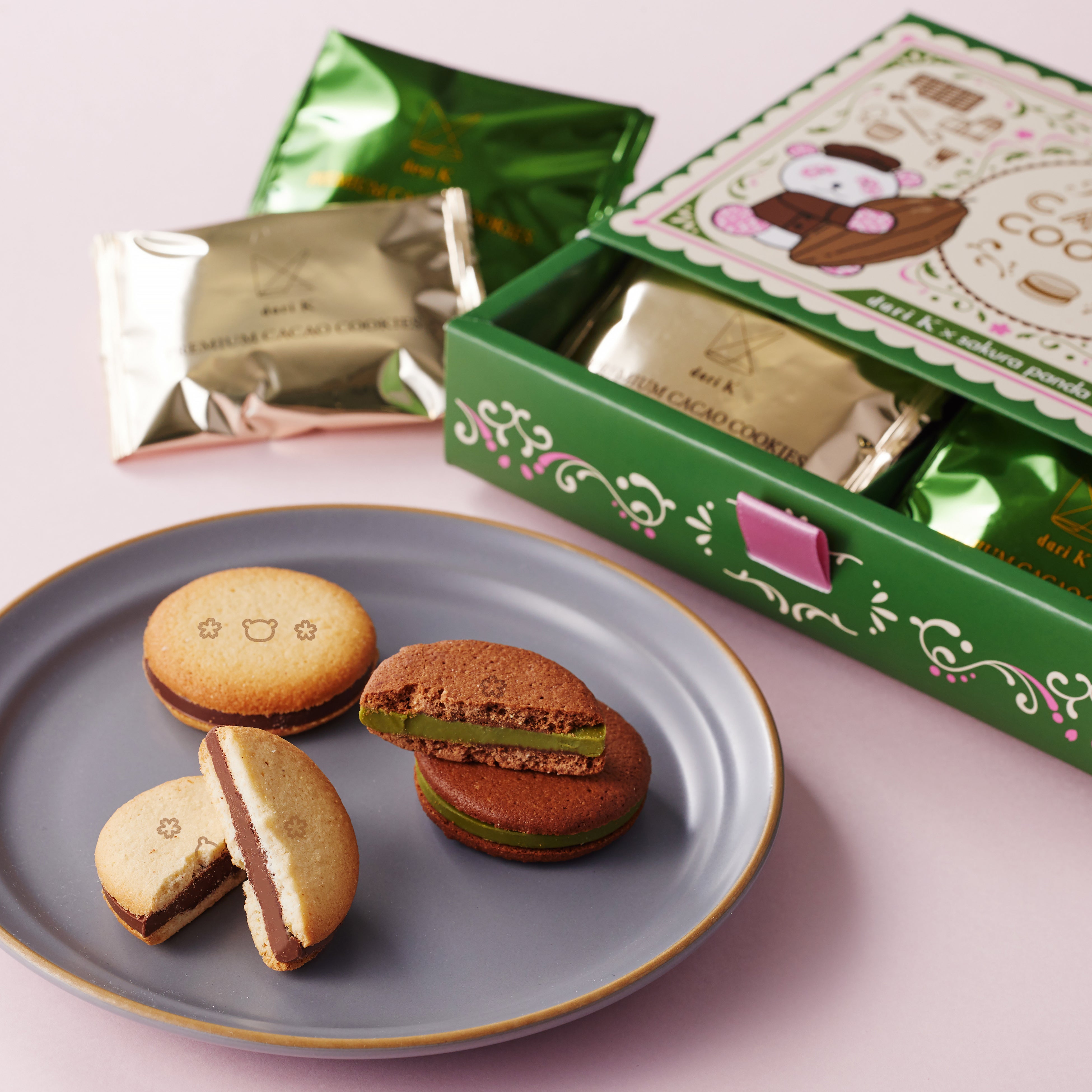 大丸松坂屋百貨店で2025年12月10日より予約スタート! 大丸・松坂屋 公式キャラクター「さくらパンダ」の特製箱入り、京都チョコレート専門店「dari K」のプレミアムカカオサンドクッキーを新発売。
