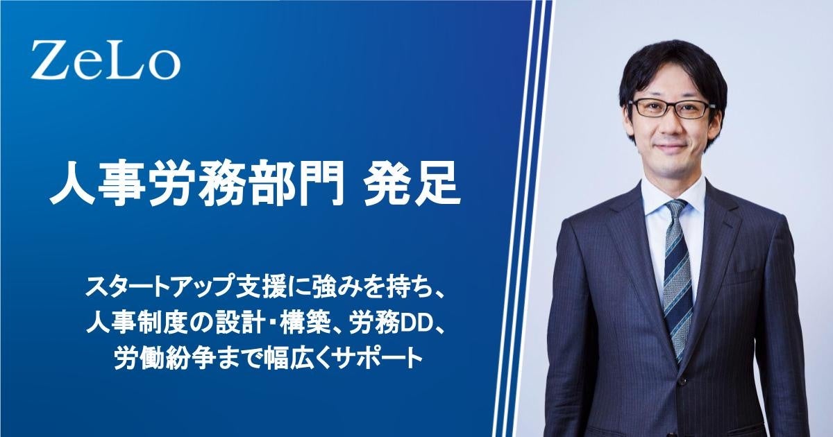 法律事務所ZeLo、「人事労務部門」を設立。スタートアップ支援に強みを持ち、労働紛争、労務DD、人事制度/賃金制度設計のアドバイスまで幅広くサポート