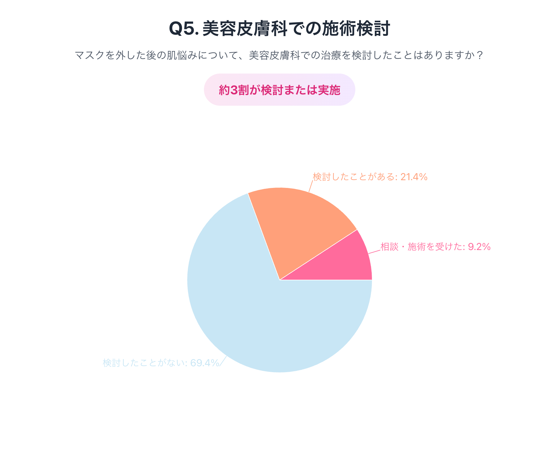 マスクを外した後の肌悩みについて、美容皮膚科での治療を検討したことがあるか調査しました。