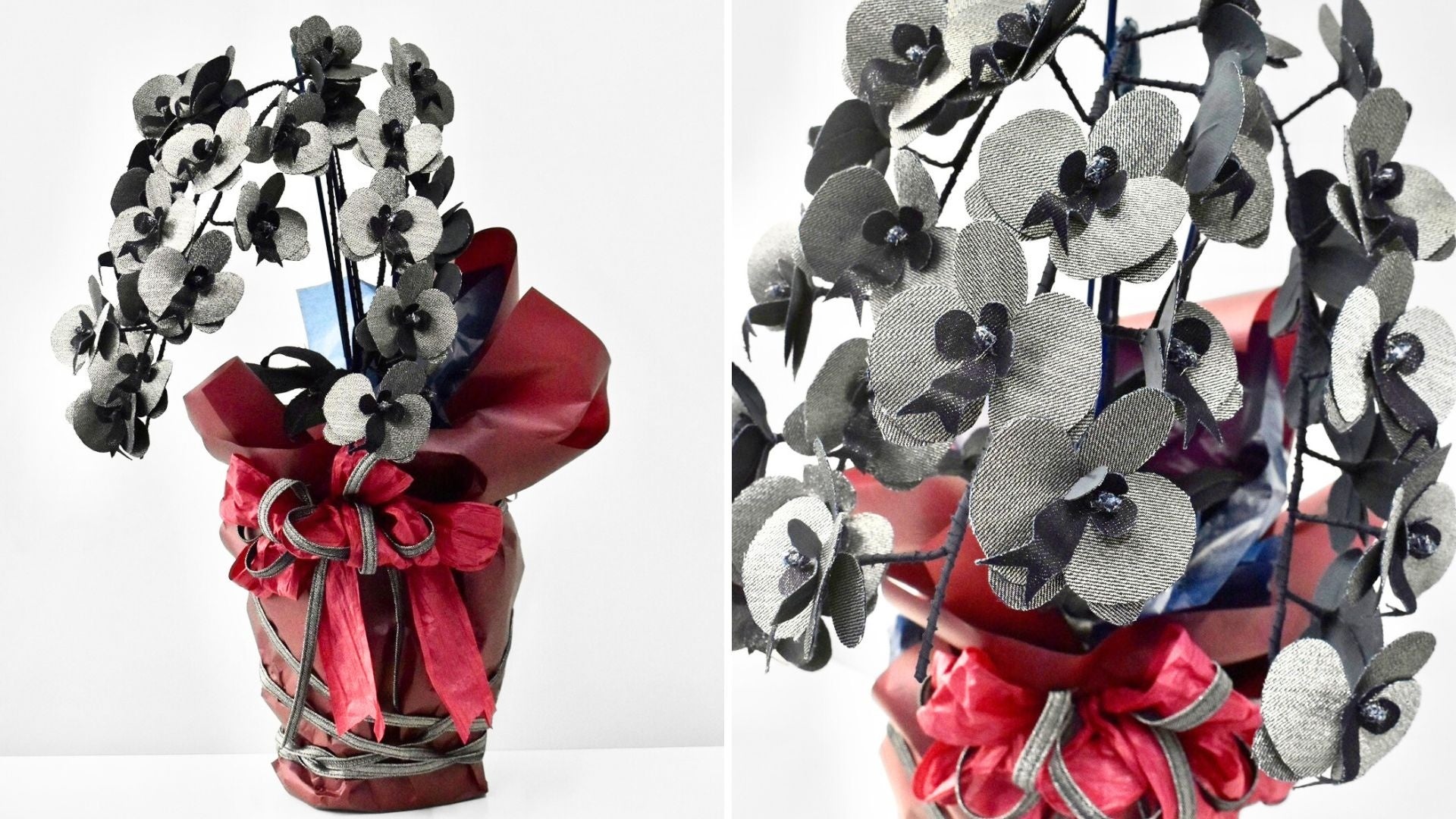 【岡山発】老舗デニムファクトリー青木被服が制作した「デニム胡蝶蘭」全3色を販売スタート。色褪せない贈り物が完成!