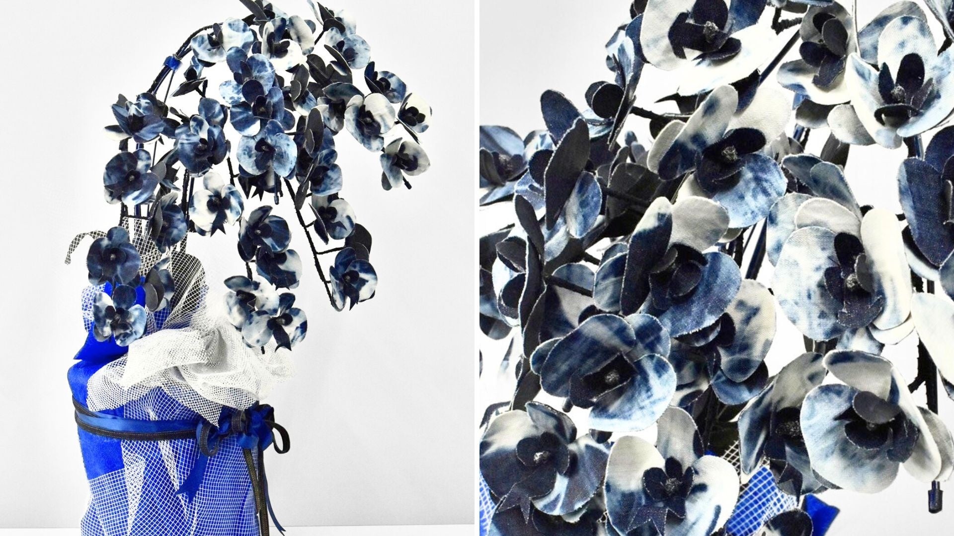 デニムで空間を華やかに彩る「岡山からの贈り物」、老舗ファクトリーが製作したデニム胡蝶蘭。「藍・箔・沫」の全3色がオンラインストアにて本日17:00よりスタート。