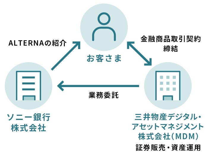 MDMがALTERNAで提供するデジタル証券の募集の取扱いをソニー銀行に委託します。