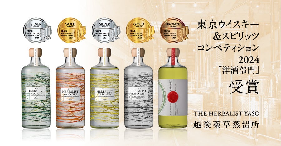 アジア最大級の酒類品評会『東京ウイスキー&スピリッツコンペティション2024』(TWSC 2024)において、株式会社越後薬草(本社:新潟県上越市、代表取締役:塚田和志)が製造する「THE HERBALIST YASO GIN ORANGE」が昨年に続く2年連続の金賞受賞、「THE HERBALIST YASO GIN 越後薬草蒸留所限定」は初の金賞受賞となりました。